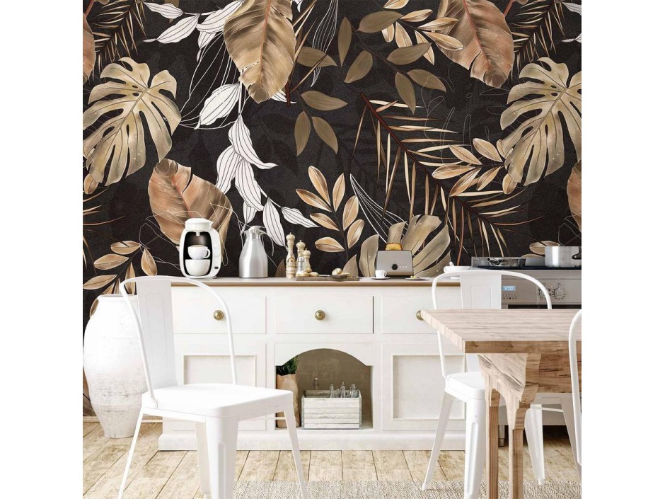 Papier peintUn "Papier peint - Abstract nature in beige - composition with golden exotic leaves" disponible dans notre offre est une solution simple et rapide pour des personnes qui veulent redonner une nouvelle vie à leur intérieur....
