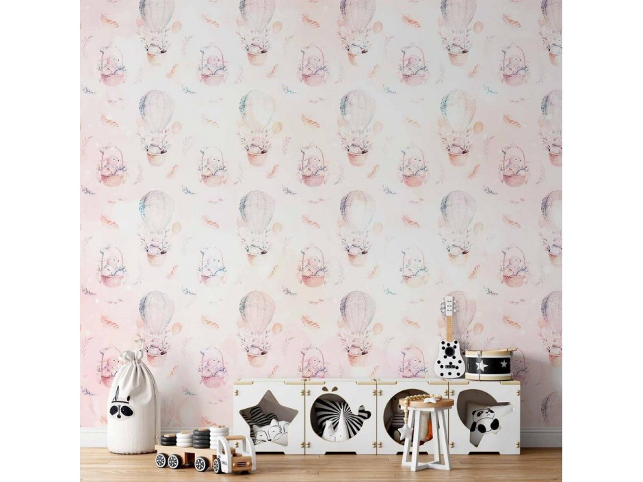Papier peintUn "Papier peint - Solid pattern with feathers - hares in a basket and in a balloon for children" disponible dans notre offre est une solution simple et rapide pour des personnes qui veulent redonner une nouvelle vie à leur...