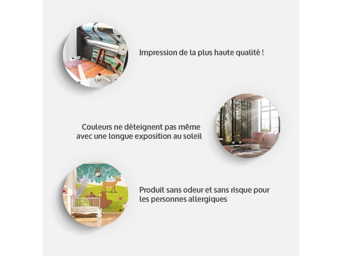 Les papiers peints disponibles dans notre vaste offre représentent des impressions numériques de très haute qualité jusqu'à 600 dpi. Le niveau dpi concerne la résolution, qui est essentielle pour bien rendre les détails des images visibles sur les papiers peints. Grâce à la précision des motifs et des dessins sur nos papiers peints, nous créons un effet visuel spectaculaire qui vous permet de vous immerger complètement dans une atmosphère créée par la décoration intérieure. Les impressions numériques pour notre papier peint chambre sont réalisées sur l’intissé de grammage de 110 g/m². Le grammage du papier peint chambre, également appelé force du papier, est une grandeur correspondant à sa masse par unité de surface. La largeur d'un seul rouleau de notre papier peint intissé est de 50 cm.