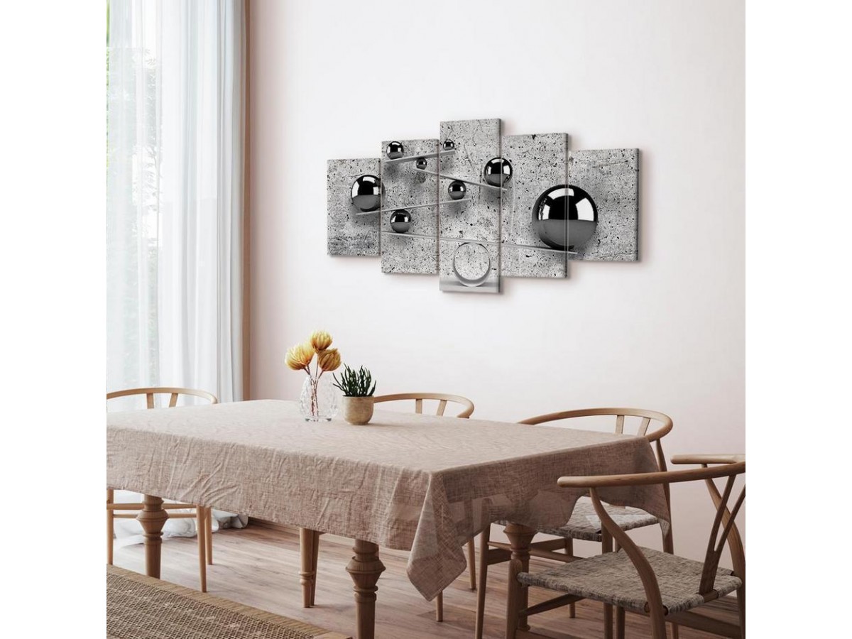 Les tableaux disponibles dans notre offre sont créés à l’aide de l'impression numérique sur toile de la plus haute qualité pour embellir votre intérieur. L’impression numérique sur toile sous la forme d’un tableau unit la tradition de la peinture sur toile avec la technologie moderne. Un effet final de ce mariage est le tableau moderne "Tableau - Balls and Concrete (5 Parts) Wide" qui peut s’accorder parfaitement avec le style de votre pièce. Les tableaux complètent la décoration de chaque intérieur et lui donnent du caractère. La décoration murale sous la forme des tableaux constitue la dernière touche dans la décoration d’intérieur. Les tableaux déco complètent la décoration de chaque espace et la rendent plus accueillante. Souvent, ils constituent une touche personnelle dans l’intérieur, en reflétant la personnalité et le goût des habitants. Les tableaux déco que nous vous proposons dans notre offre sont des impressions numériques de la plus haute qualité réalisées sur toile. Cette technique de réalisation permet d’obtenir une image possédant une richesse de détails dont les couleurs sont vives et très fraîches. Un tableau moderne s’accorde parfaitement à des intérieurs aménagés dans le style moderne, mais aussi dans le style minimaliste et dans le style zen.