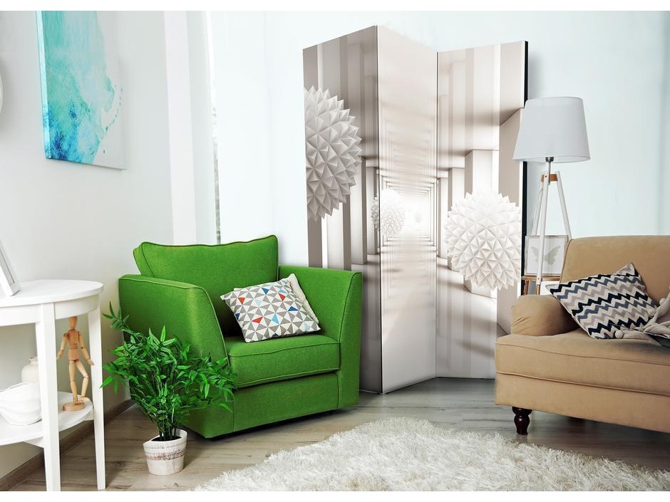 Les paravents décoratifs sont certainement une idée originale dans le domaine de la décoration intérieure. Les paravents remplissent un rôle décoratif, mais aussi bien pratique et fonctionnel. En effet, un paravent intérieur "Paravent - Gateway to the Future" est un meuble formant une cloison amovible et repliable qui peut servir pour délimiter un espace et diviser une grande pièce en deux espaces séparés. Le paravent intérieur est une invention qui est apparue pour la première fois en Chine. Depuis le début de leur existence, les paravents remplissaient des différentes fonctions, comme protéger contre les courants d'air ou bien encore créer un espace isolé pour l'intimité. De nos jours, le paravent intérieur est une belle décoration intérieure, qui permet aussi de gérer l'espace d’une ou de plusieurs pièces selon notre volonté. Le paravent intérieur est également utilisé dans les locaux de service, comme un coiffeur, un cabinet médical ou un bureau comptable pour créer un espace propice à l’intimité ou bien encore à la concentration.