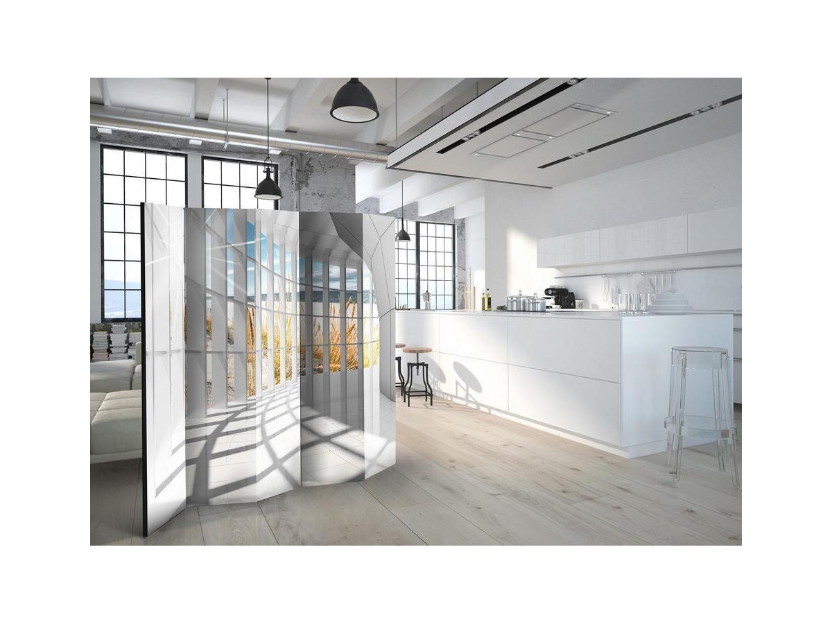 Les paravents décoratifs sont certainement une idée originale dans le domaine de la décoration intérieure. Les paravents remplissent un rôle décoratif, mais aussi bien pratique et fonctionnel. En effet, un paravent intérieur "Paravent - Seaside Bastion II" est un meuble formant une cloison amovible et repliable qui peut servir pour délimiter un espace et diviser une grande pièce en deux espaces séparés. Le paravent intérieur est une invention qui est apparue pour la première fois en Chine. Depuis le début de leur existence, les paravents remplissaient des différentes fonctions, comme protéger contre les courants d'air ou bien encore créer un espace isolé pour l'intimité. De nos jours, le paravent intérieur est une belle décoration intérieure, qui permet aussi de gérer l'espace d’une ou de plusieurs pièces selon notre volonté. Le paravent intérieur est également utilisé dans les locaux de service, comme un coiffeur, un cabinet médical ou un bureau comptable pour créer un espace propice à l’intimité ou bien encore à la concentration.