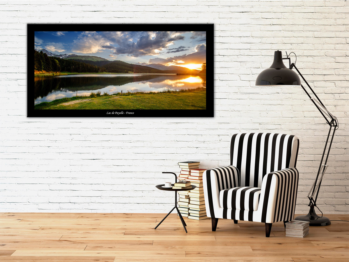 Toile haute définition en polyester 300 gr, montée sur châssis en bois.