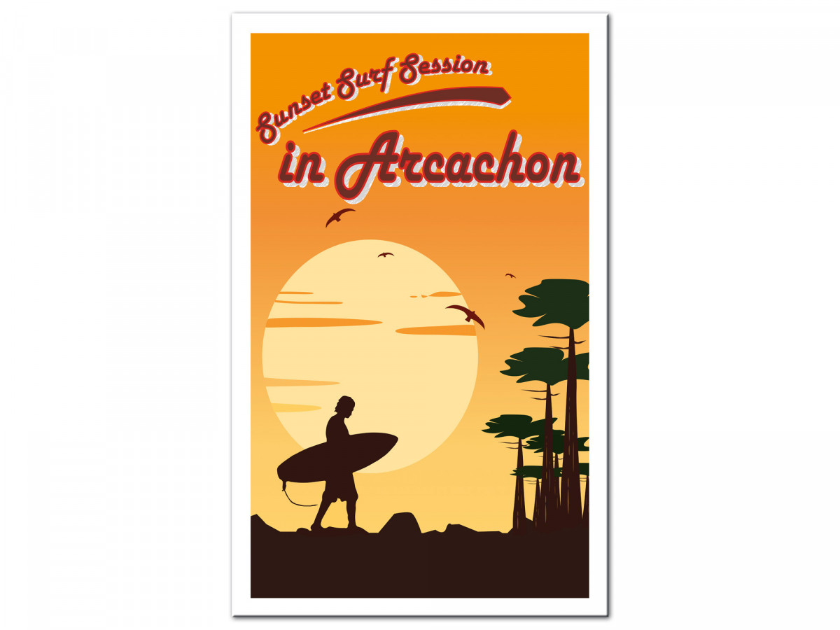 Dans ce tableau déco, l’illustration des lueurs de la tombée du jour sur la côte Atlantique apporte de la chaleur et de la douceur. C’est une idée déco parfaite pour ceux qui veulent donner à leur intérieur des notes de vacances et de sérénité. Cette affiche trouvera sa place dans la décoration murale des amoureux du surf, des vagues et de l’océan. Ce tableau est une véritable décoration design. Sa toile moderne combine avec justesse les codes du vintage et du contemporain.