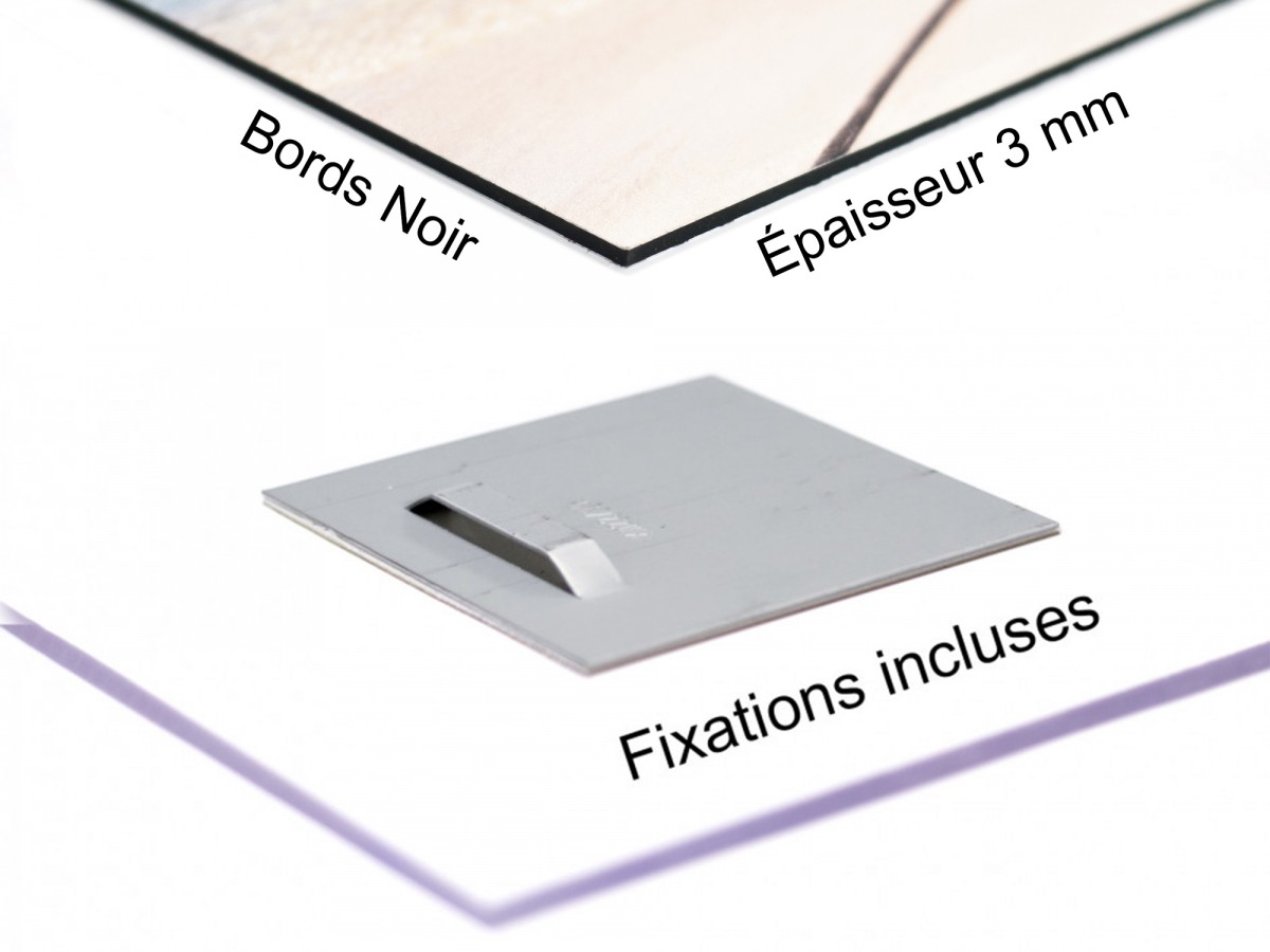 Fabriqué à partir de deux plaques d’aluminium thermocollées de part et d’autre d’une âme en polyéthylène, le Dibond est reconnu pour sa solidité exceptionnelle et sa résistance aux intempéries, à la corrosion et aux rayons UV. La surface blanche thermolaquée garantit une impression éclatante et des détails précis, pour une œuvre d’une qualité irréprochable.