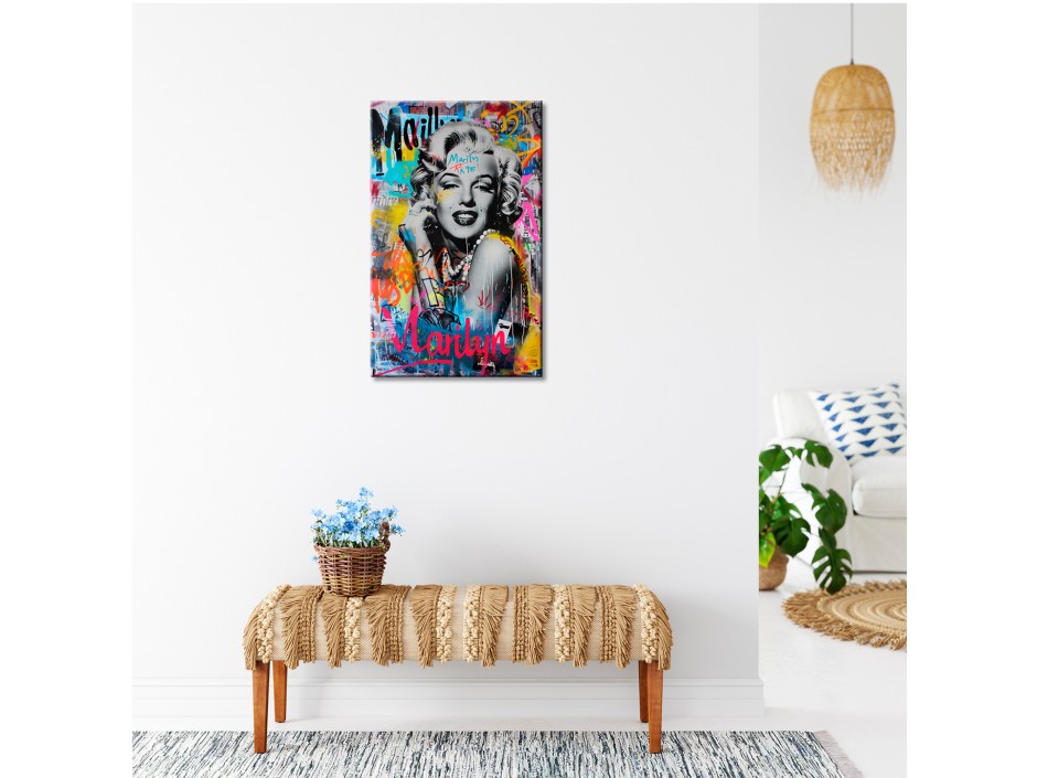 Des matériaux de haute qualité Le tableau "Marilyn Graffiti" est imprimé sur un papier intissé spécial qui reflète parfaitement les couleurs. La toile est tendue sur un châssis léger mais stable, fait des matériaux respectueux de l’environnement. Décoration de première qualité assurée par une impression de haute gamme, grâce à laquelle des couleurs sont intenses et des détails sont parfaitement reproduits, indépendamment de la taille du tableau.