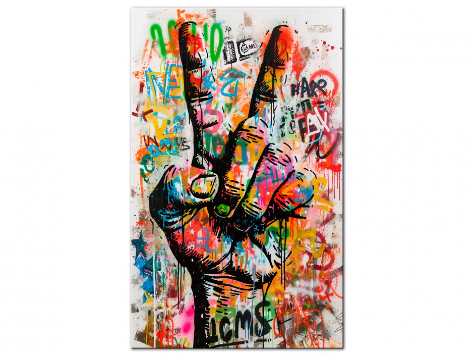 Des matériaux de haute qualité Le tableau "Peace & Love Street" est imprimé sur un papier intissé spécial qui reflète parfaitement les couleurs. La toile est tendue sur un châssis léger mais stable, fait des matériaux respectueux de l’environnement. Décoration de première qualité assurée par une impression de haute gamme, grâce à laquelle des couleurs sont intenses et des détails sont parfaitement reproduits, indépendamment de la taille du tableau.