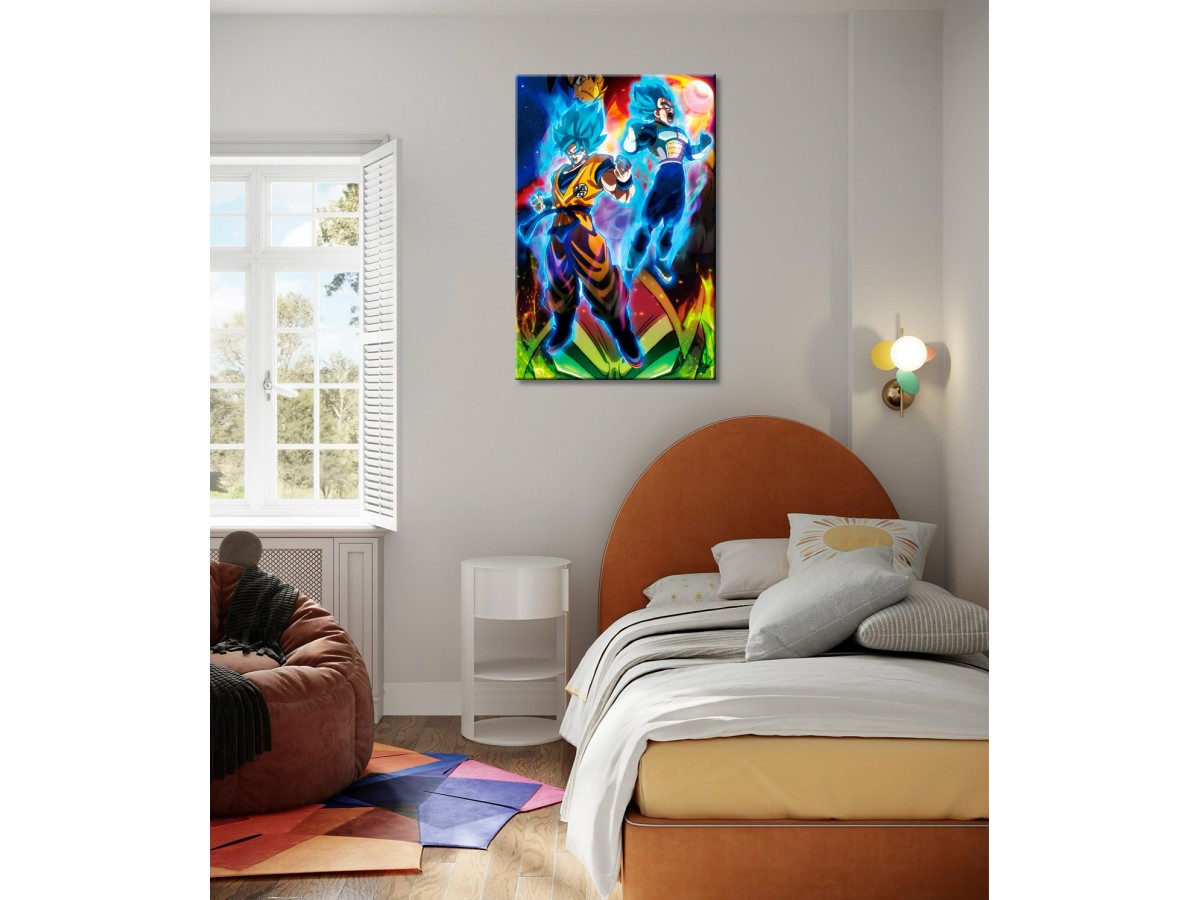 Des matériaux de haute qualité Le tableau "Goku et Vegeta Super Saiyan Blue" est imprimé sur un papier intissé spécial qui reflète parfaitement les couleurs. La toile est tendue sur un châssis léger mais stable, fait des matériaux respectueux de l’environnement. Décoration de première qualité assurée par une impression de haute gamme, grâce à laquelle des couleurs sont intenses et des détails sont parfaitement reproduits, indépendamment de la taille du tableau.