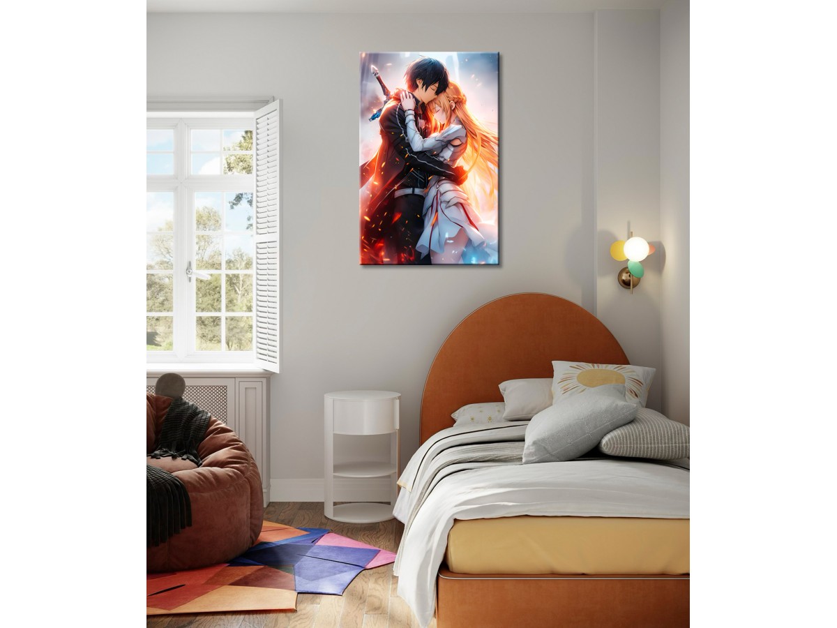 Des matériaux de haute qualité Le tableau "Couple SAO Kirito Asuna" est imprimé sur un papier intissé spécial qui reflète parfaitement les couleurs. La toile est tendue sur un châssis léger mais stable, fait des matériaux respectueux de l’environnement. Décoration de première qualité assurée par une impression de haute gamme, grâce à laquelle des couleurs sont intenses et des détails sont parfaitement reproduits, indépendamment de la taille du tableau.