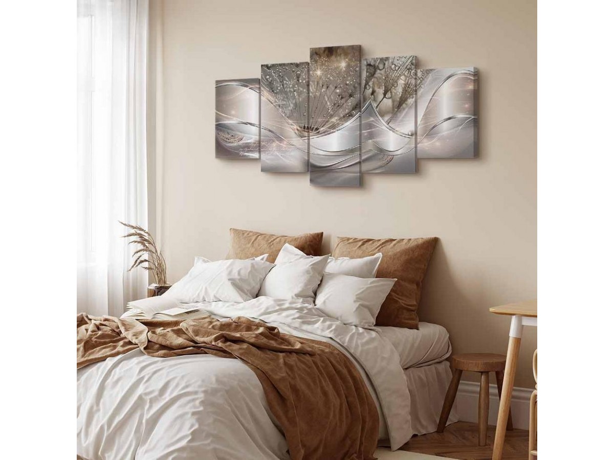 Les tableaux disponibles dans notre offre sont créés à l’aide de l'impression numérique sur toile de la plus haute qualité pour embellir votre intérieur. L’impression numérique sur toile sous la forme d’un tableau unit la tradition de la peinture sur toile avec la technologie moderne. Un effet final de ce mariage est le tableau moderne "Tableau - Sparkling Dandelions (5 Parts) Beige Wide" qui peut s’accorder parfaitement avec le style de votre pièce. Les tableaux complètent la décoration de chaque intérieur et lui donnent du caractère. La décoration murale sous la forme des tableaux constitue la dernière touche dans la décoration d’intérieur. Les tableaux déco complètent la décoration de chaque espace et la rendent plus accueillante. Souvent, ils constituent une touche personnelle dans l’intérieur, en reflétant la personnalité et le goût des habitants. Les tableaux déco que nous vous proposons dans notre offre sont des impressions numériques de la plus haute qualité réalisées sur toile. Cette technique de réalisation permet d’obtenir une image possédant une richesse de détails dont les couleurs sont vives et très fraîches. Un tableau moderne s’accorde parfaitement à des intérieurs aménagés dans le style moderne, mais aussi dans le style minimaliste et dans le style zen.