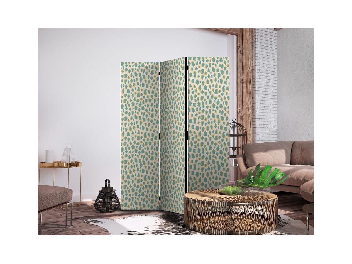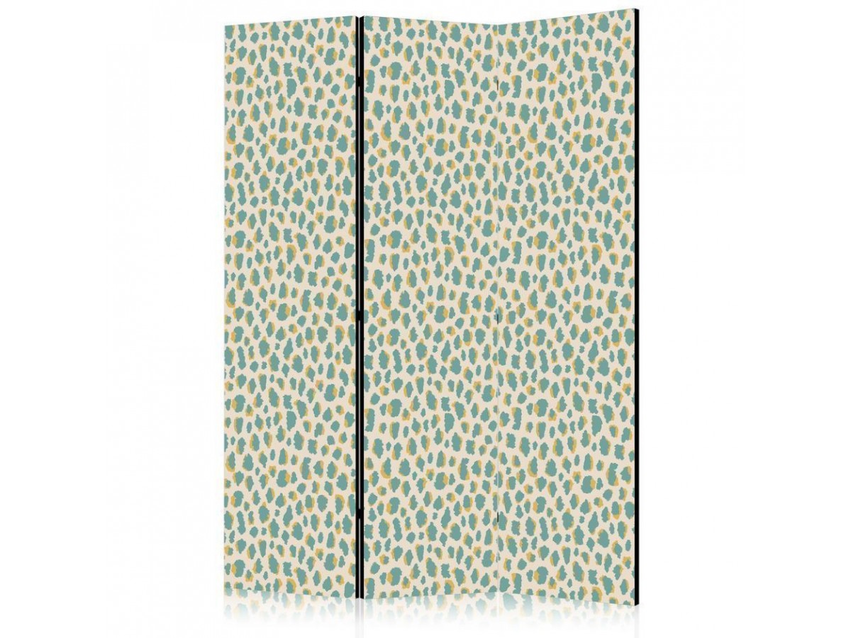 Les paravents décoratifs sont certainement une idée originale dans le domaine de la décoration intérieure. Les paravents remplissent un rôle décoratif, mais aussi bien pratique et fonctionnel. En effet, un paravent intérieur "Paravent - Giraffe Pattern - Animal Pattern in Turquoise Spots on a Light Background" est un meuble formant une cloison amovible et repliable qui peut servir pour délimiter un espace et diviser une grande pièce en deux espaces séparés. Le paravent intérieur est une invention qui est apparue pour la première fois en Chine. Depuis le début de leur existence, les paravents remplissaient des différentes fonctions, comme protéger contre les courants d'air ou bien encore créer un espace isolé pour l'intimité. De nos jours, le paravent intérieur est une belle décoration intérieure, qui permet aussi de gérer l'espace d’une ou de plusieurs pièces selon notre volonté. Le paravent intérieur est également utilisé dans les locaux de service, comme un coiffeur, un cabinet médical ou un bureau comptable pour créer un espace propice à l’intimité ou bien encore à la concentration.
