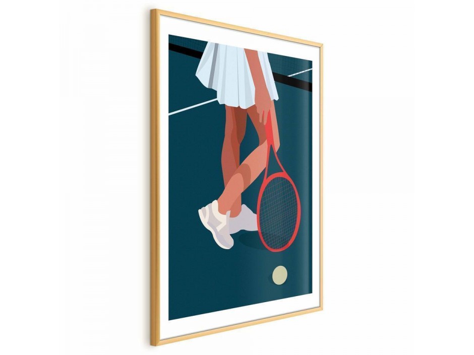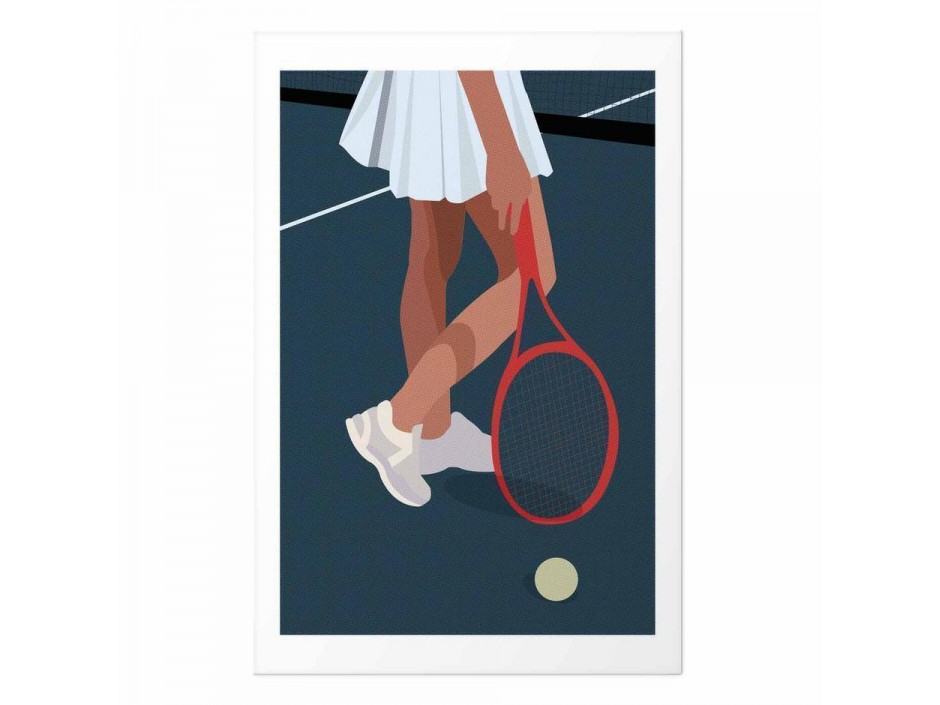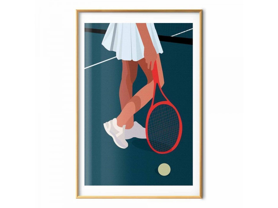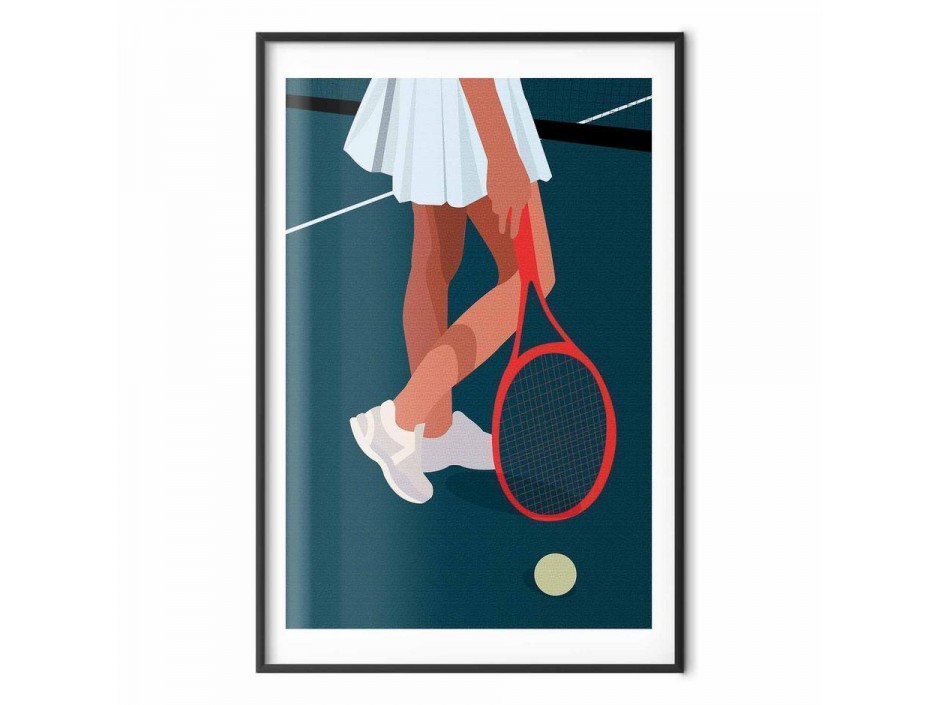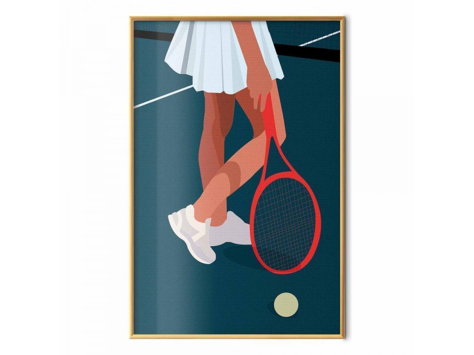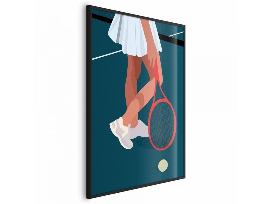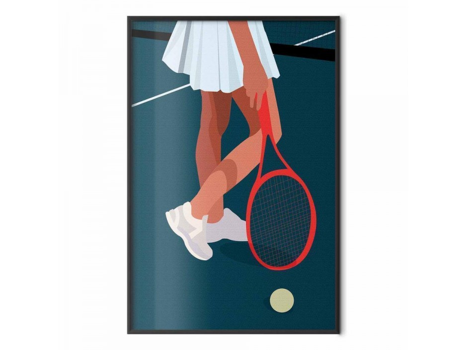 Poster - Tennis Player with a Red Racket on the Court - Illustration