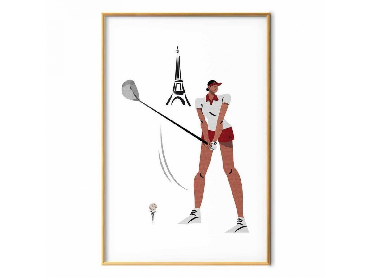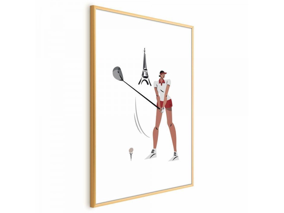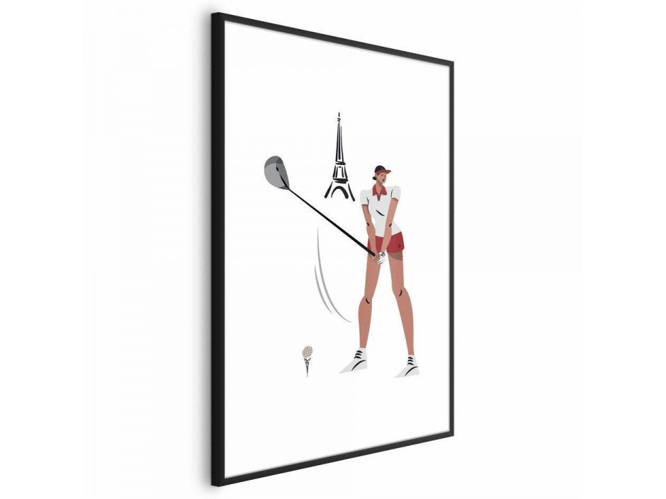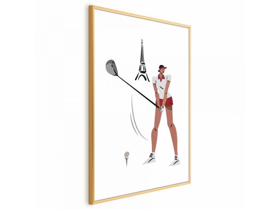 Poster - Illustration of a Female Golfer with the Eiffel Tower in the Background
