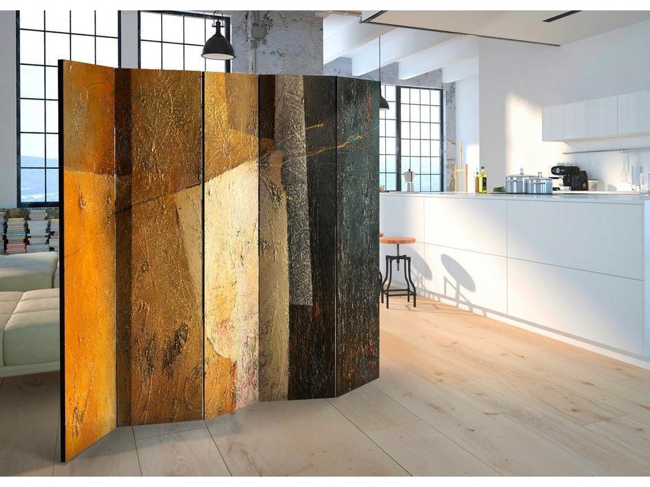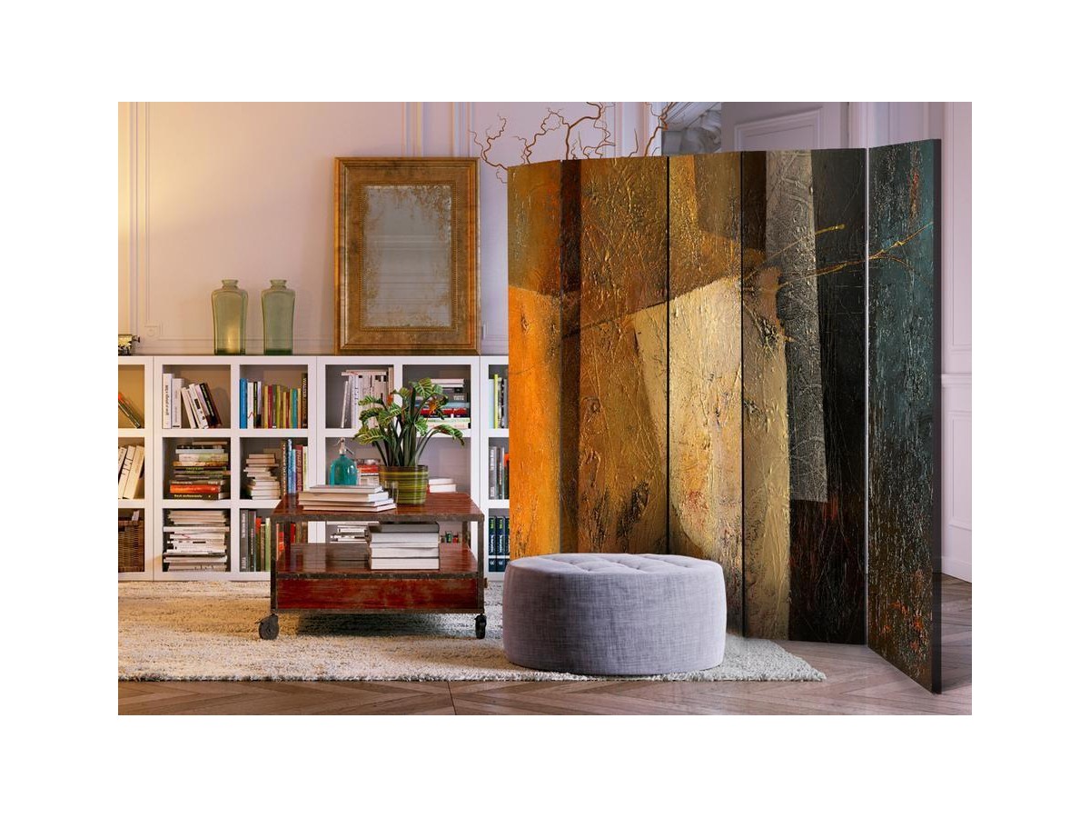 Un paravent décoratif "Paravent - Modern Artistry II" est composé de panneaux orientables, appelés volets, en bois encadrés d'un châssis de bois et réunis par des charnières. Le paravent décoratif disponible dans notre offre se compose de trois ou de cinq parties. Tous les paravents que nous proposons ont une impression de haute qualité sur l’entoilage qui peut être une belle décoration d'intérieur. L'entoilage d’un paravent déco est tendu sur un cadre en bois solide et léger en même temps. Les panneaux sont finis avec un ruban de satin. Les charnières métalliques sont durables et très solides.Caractéristique technique