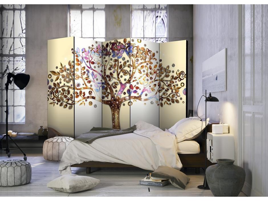 Les paravents décoratifs sont certainement une idée originale dans le domaine de la décoration intérieure. Les paravents remplissent un rôle décoratif, mais aussi bien pratique et fonctionnel. En effet, un paravent intérieur "Paravent - Golden Tree II" est un meuble formant une cloison amovible et repliable qui peut servir pour délimiter un espace et diviser une grande pièce en deux espaces séparés. Le paravent intérieur est une invention qui est apparue pour la première fois en Chine. Depuis le début de leur existence, les paravents remplissaient des différentes fonctions, comme protéger contre les courants d'air ou bien encore créer un espace isolé pour l'intimité. De nos jours, le paravent intérieur est une belle décoration intérieure, qui permet aussi de gérer l'espace d’une ou de plusieurs pièces selon notre volonté. Le paravent intérieur est également utilisé dans les locaux de service, comme un coiffeur, un cabinet médical ou un bureau comptable pour créer un espace propice à l’intimité ou bien encore à la concentration.
