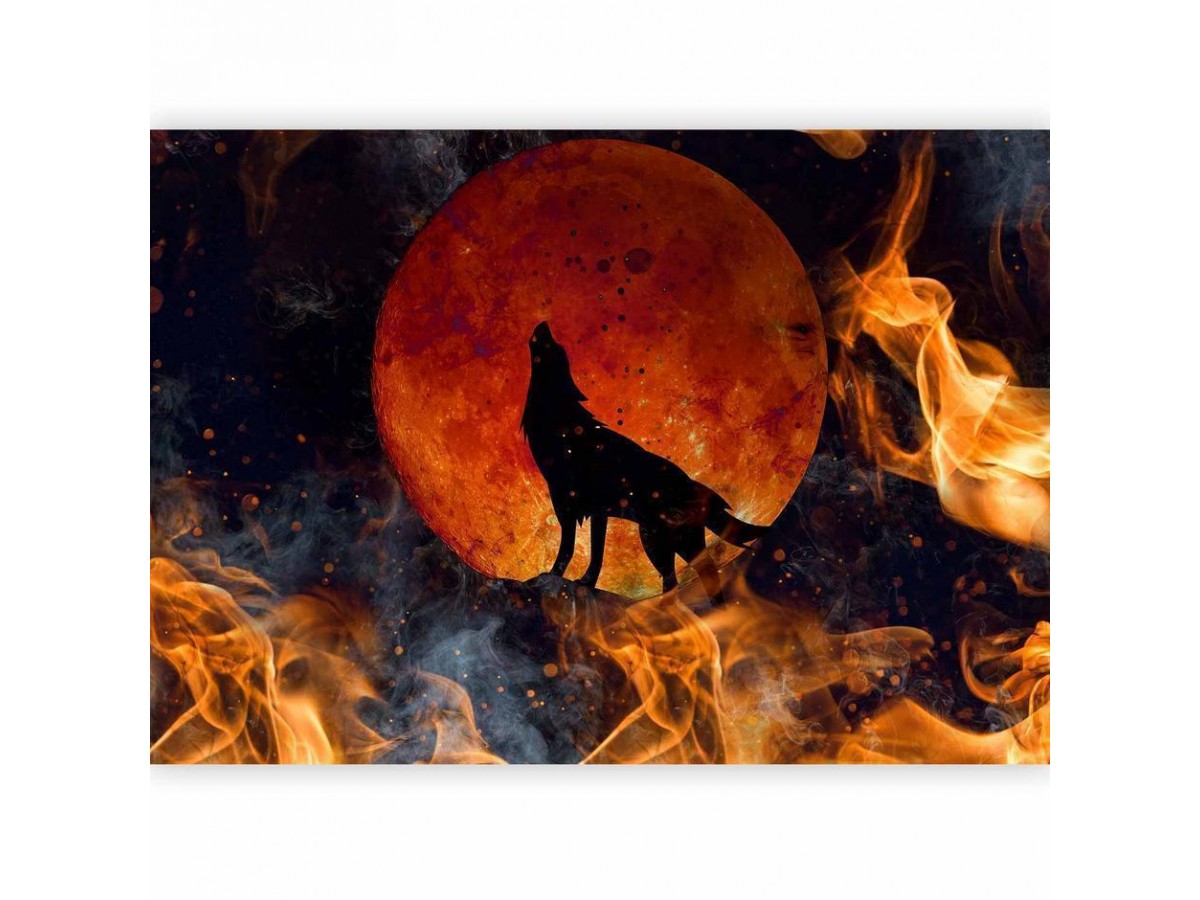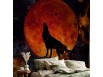 Papier peint - Wild nature - wolf on a background of a red moon in flames of fire