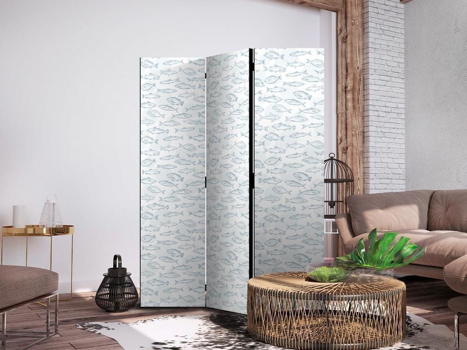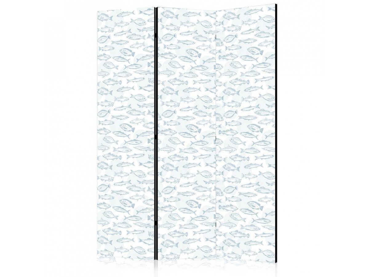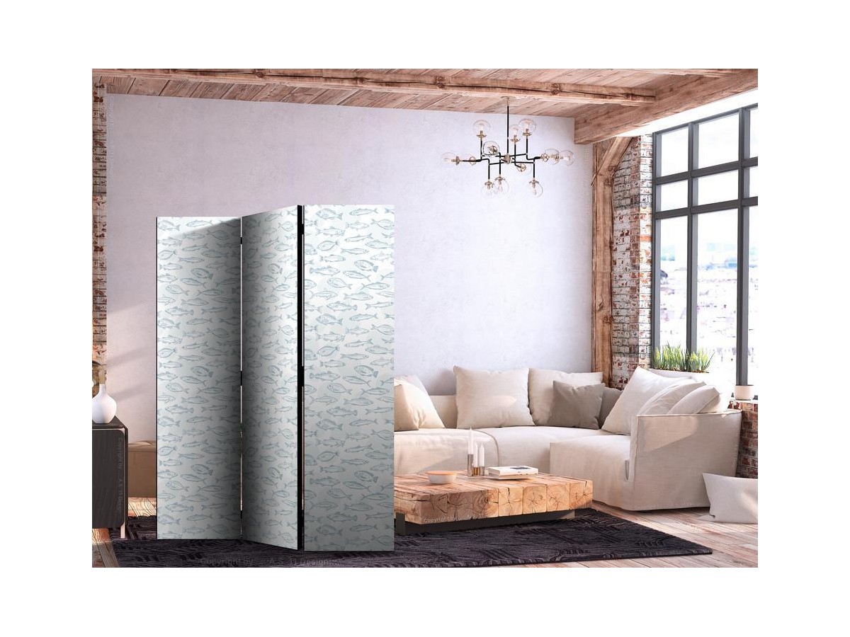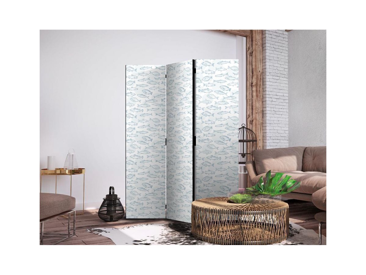 Les paravents décoratifs sont certainement une idée originale dans le domaine de la décoration intérieure. Les paravents remplissent un rôle décoratif, mais aussi bien pratique et fonctionnel. En effet, un paravent intérieur "Paravent - Blue Fish - Blue Outlines of Various Species of Fish on a White-Blue Background" est un meuble formant une cloison amovible et repliable qui peut servir pour délimiter un espace et diviser une grande pièce en deux espaces séparés. Le paravent intérieur est une invention qui est apparue pour la première fois en Chine. Depuis le début de leur existence, les paravents remplissaient des différentes fonctions, comme protéger contre les courants d'air ou bien encore créer un espace isolé pour l'intimité. De nos jours, le paravent intérieur est une belle décoration intérieure, qui permet aussi de gérer l'espace d’une ou de plusieurs pièces selon notre volonté. Le paravent intérieur est également utilisé dans les locaux de service, comme un coiffeur, un cabinet médical ou un bureau comptable pour créer un espace propice à l’intimité ou bien encore à la concentration.