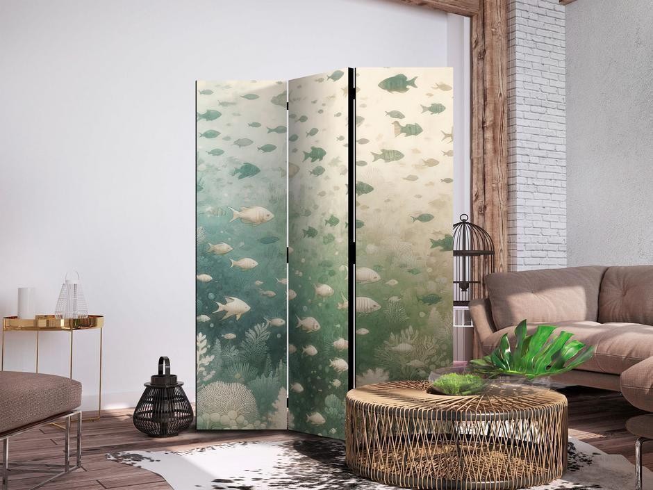 Paravent - Fish and Diverse Vegetation - A Group of Fish in Pastel Muted Colors Among Oceanic Vegetation