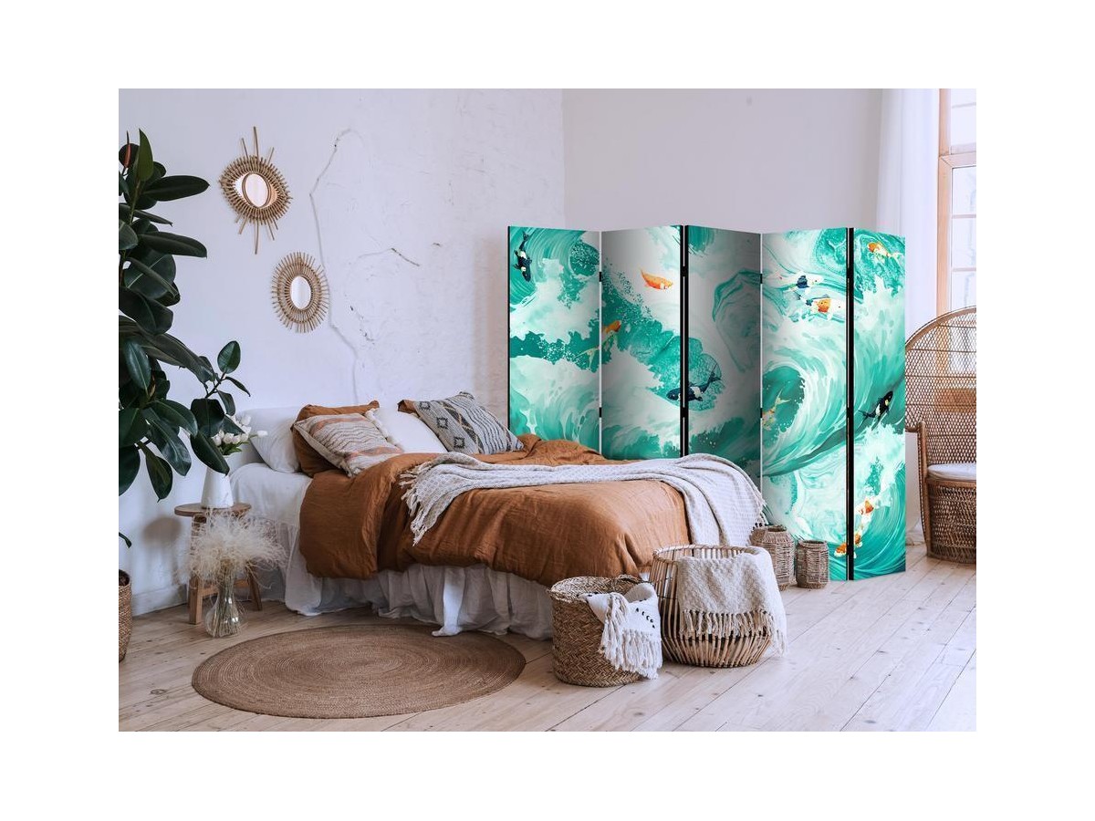 Paravent intérieur "Paravent - Koi Fish Among Waves - Japanese Fish Amid Waves in Shades of Turquoise And White"Les paravents décoratifs sont certainement une idée originale dans le domaine de la décoration intérieure. Les paravents...