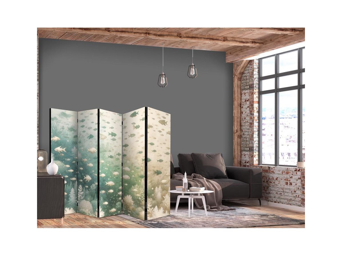 Paravent - Fish and Diverse Vegetation - A Group of Fish in Pastel Muted Colors Among Oceanic Vegetation