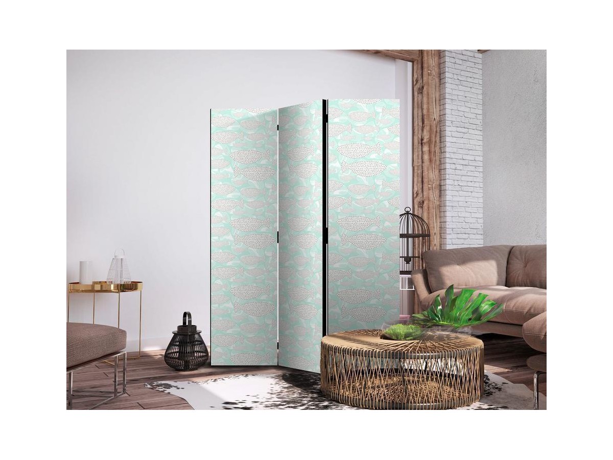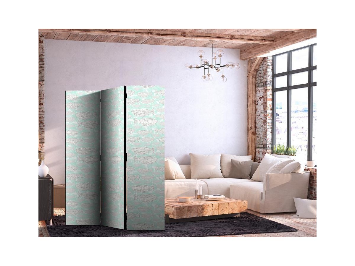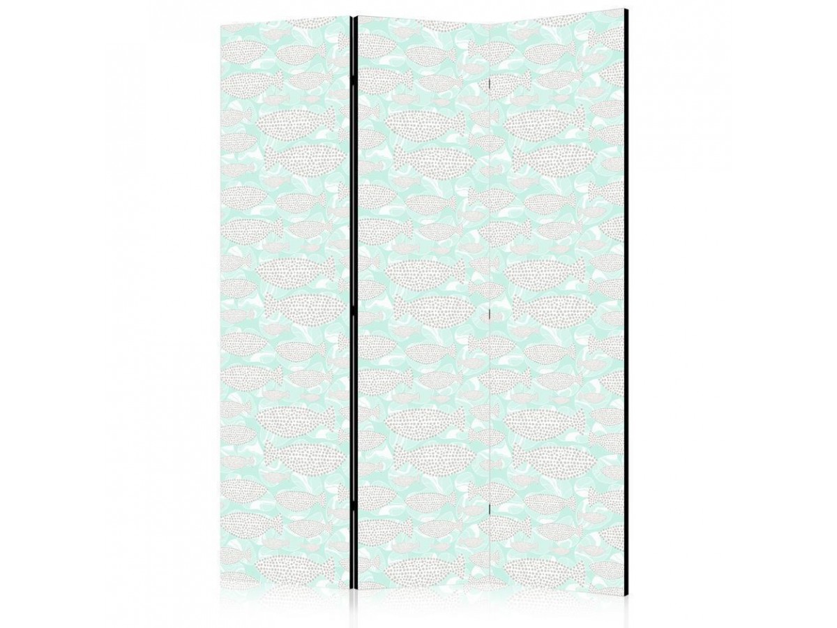 Paravent intérieur "Paravent - Minimalist Fish - Fish of Grey Dots on a Crystal Clear Water Surface in Mint Green Colors"