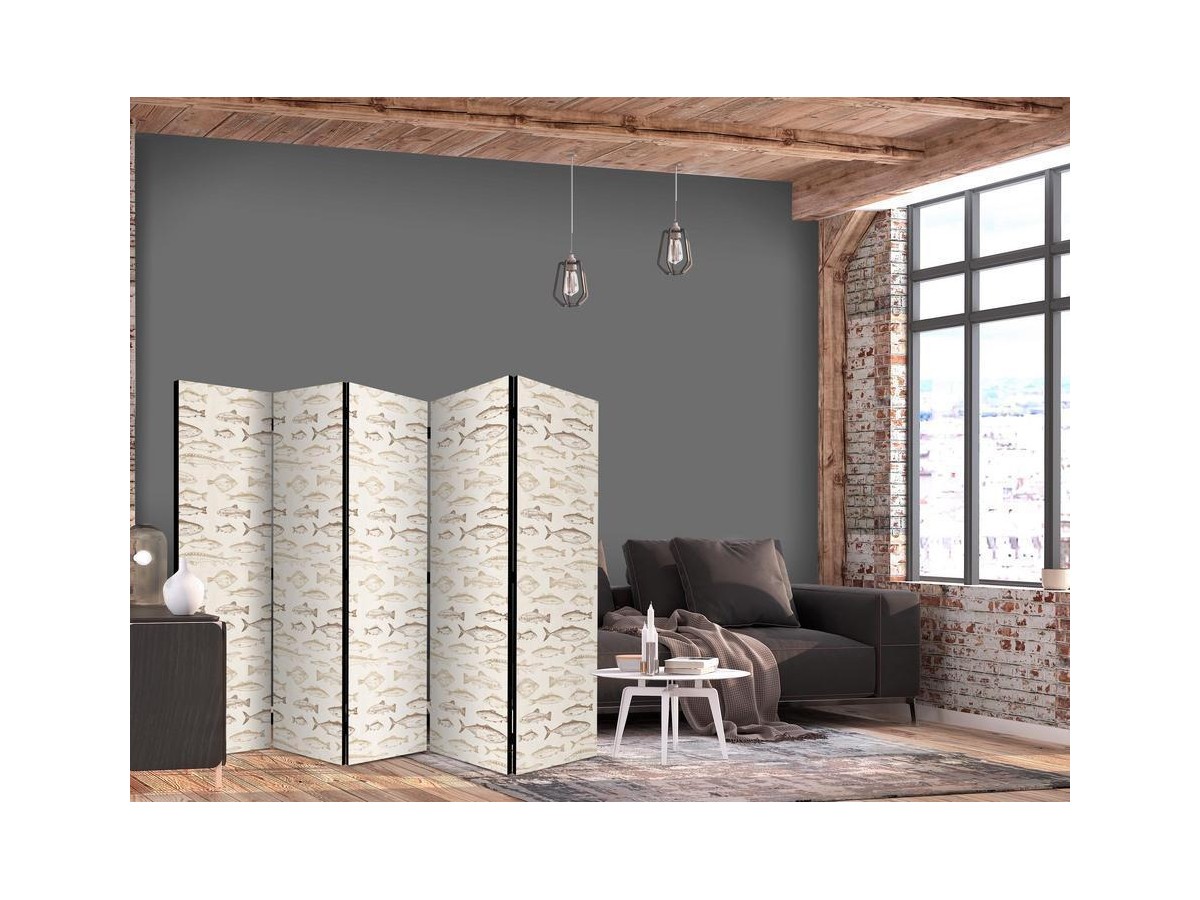 Les paravents décoratifs sont certainement une idée originale dans le domaine de la décoration intérieure. Les paravents remplissent un rôle décoratif, mais aussi bien pratique et fonctionnel. En effet, un paravent intérieur "Paravent - Fish in Beige Tones - Various Species of Fish in Beige-Brown Colors Presented in Vintage Style on a Light Background" est un meuble formant une cloison amovible et repliable qui peut servir pour délimiter un espace et diviser une grande pièce en deux espaces séparés. Le paravent intérieur est une invention qui est apparue pour la première fois en Chine. Depuis le début de leur existence, les paravents remplissaient des différentes fonctions, comme protéger contre les courants d'air ou bien encore créer un espace isolé pour l'intimité. De nos jours, le paravent intérieur est une belle décoration intérieure, qui permet aussi de gérer l'espace d’une ou de plusieurs pièces selon notre volonté. Le paravent intérieur est également utilisé dans les locaux de service, comme un coiffeur, un cabinet médical ou un bureau comptable pour créer un espace propice à l’intimité ou bien encore à la concentration.