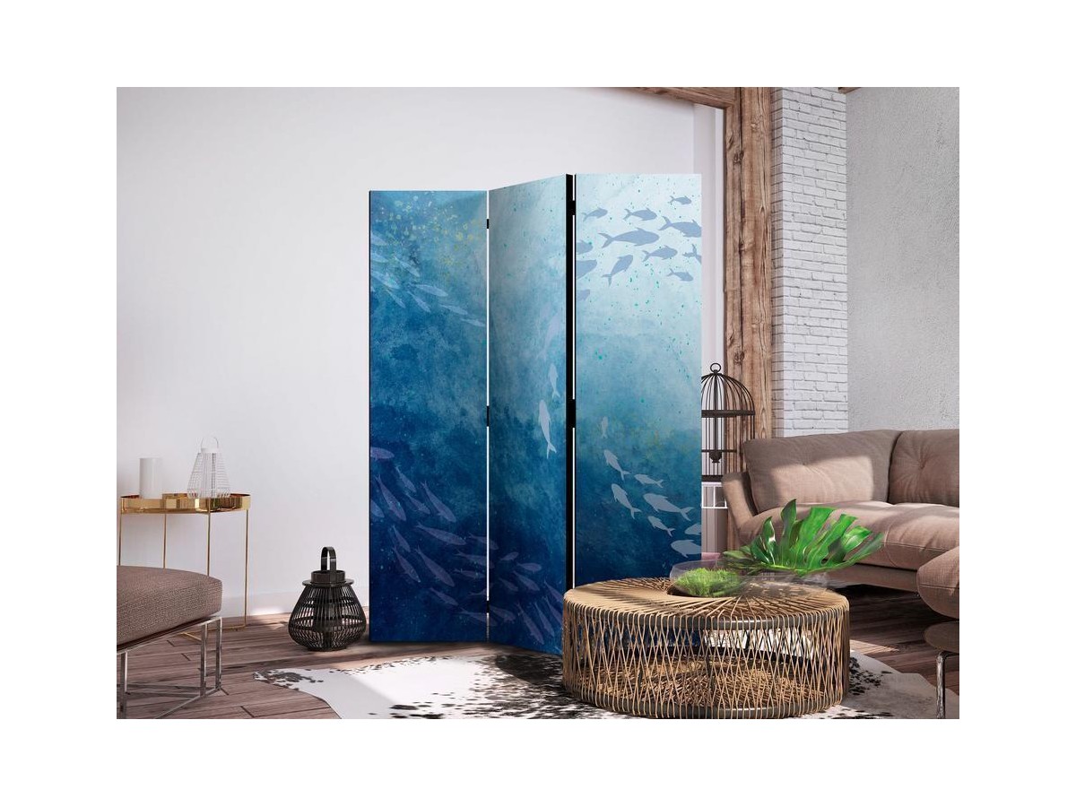 Paravent intérieur "Paravent - Schools of Fish - Luminous Clusters of Fish in Blue Hues Amidst the Sea Depths"