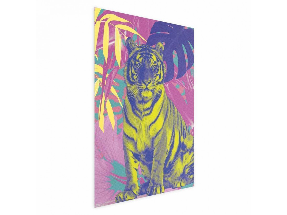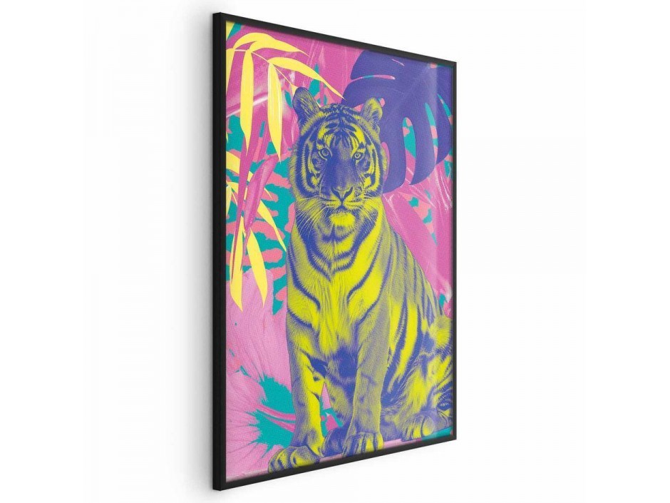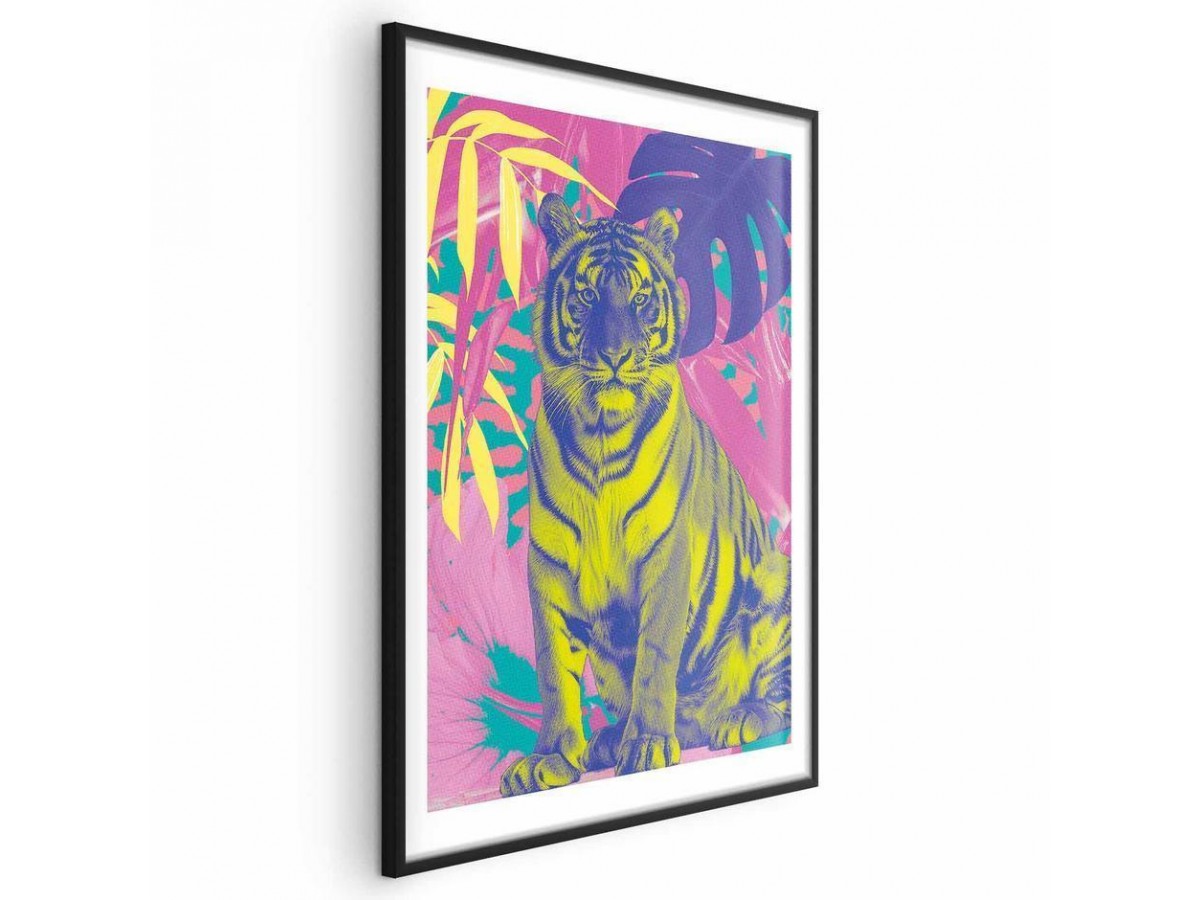 Poster - Colorful Tiger - intense colors of a tiger surrounded by tropical plants