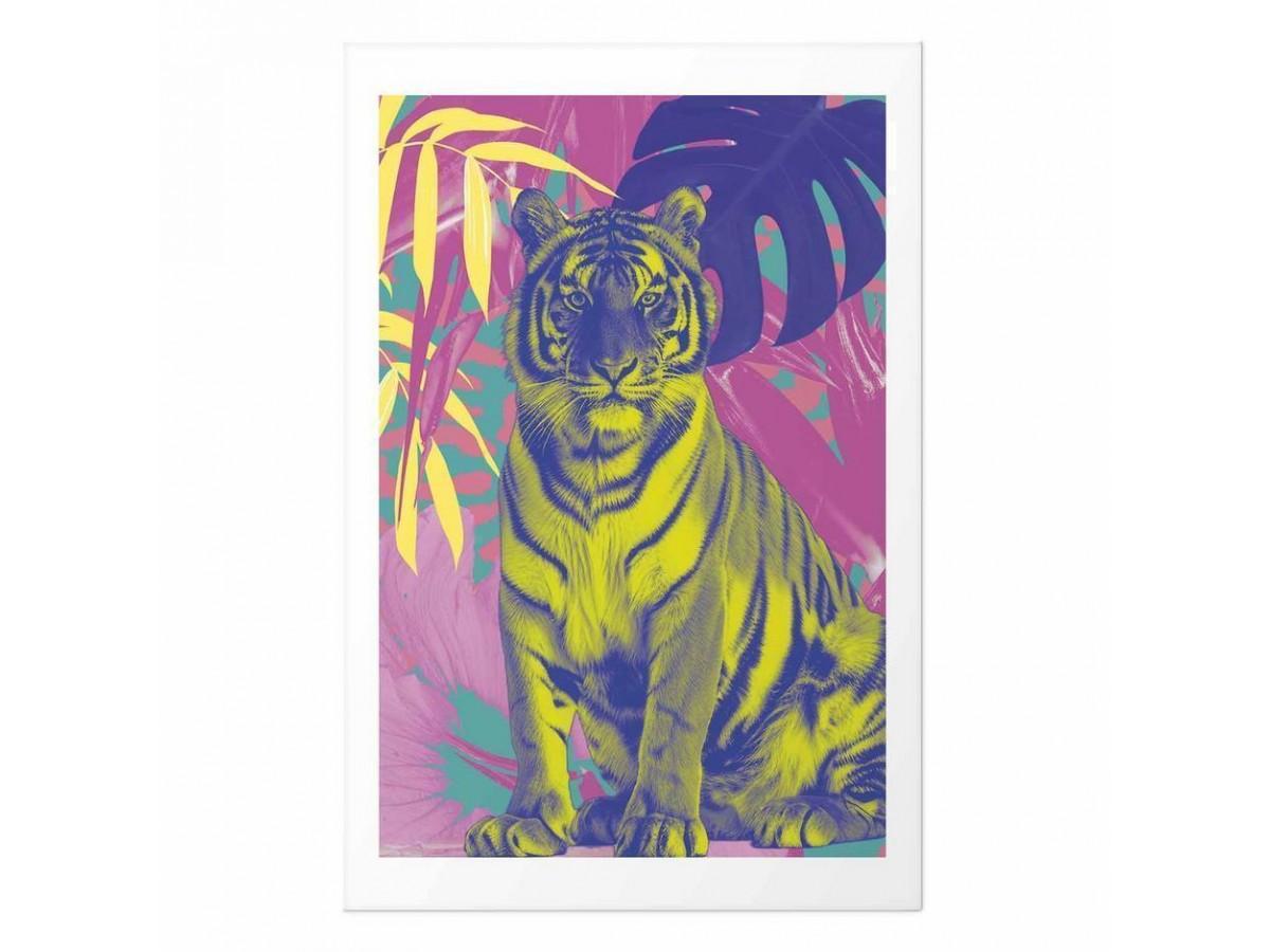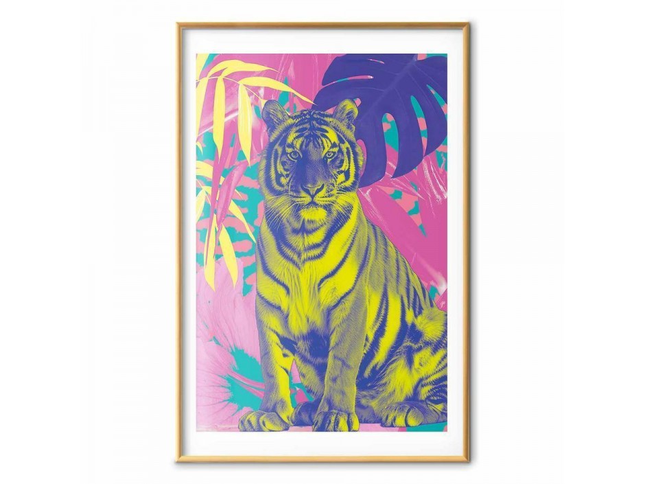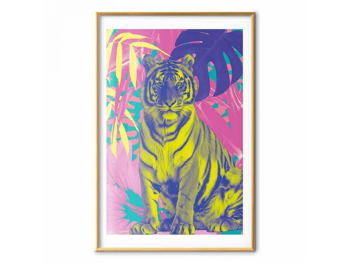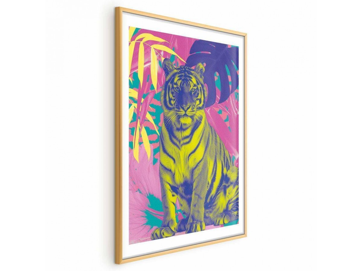 Poster - Colorful Tiger - intense colors of a tiger surrounded by tropical plants
