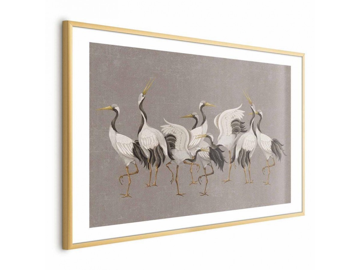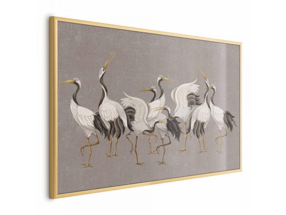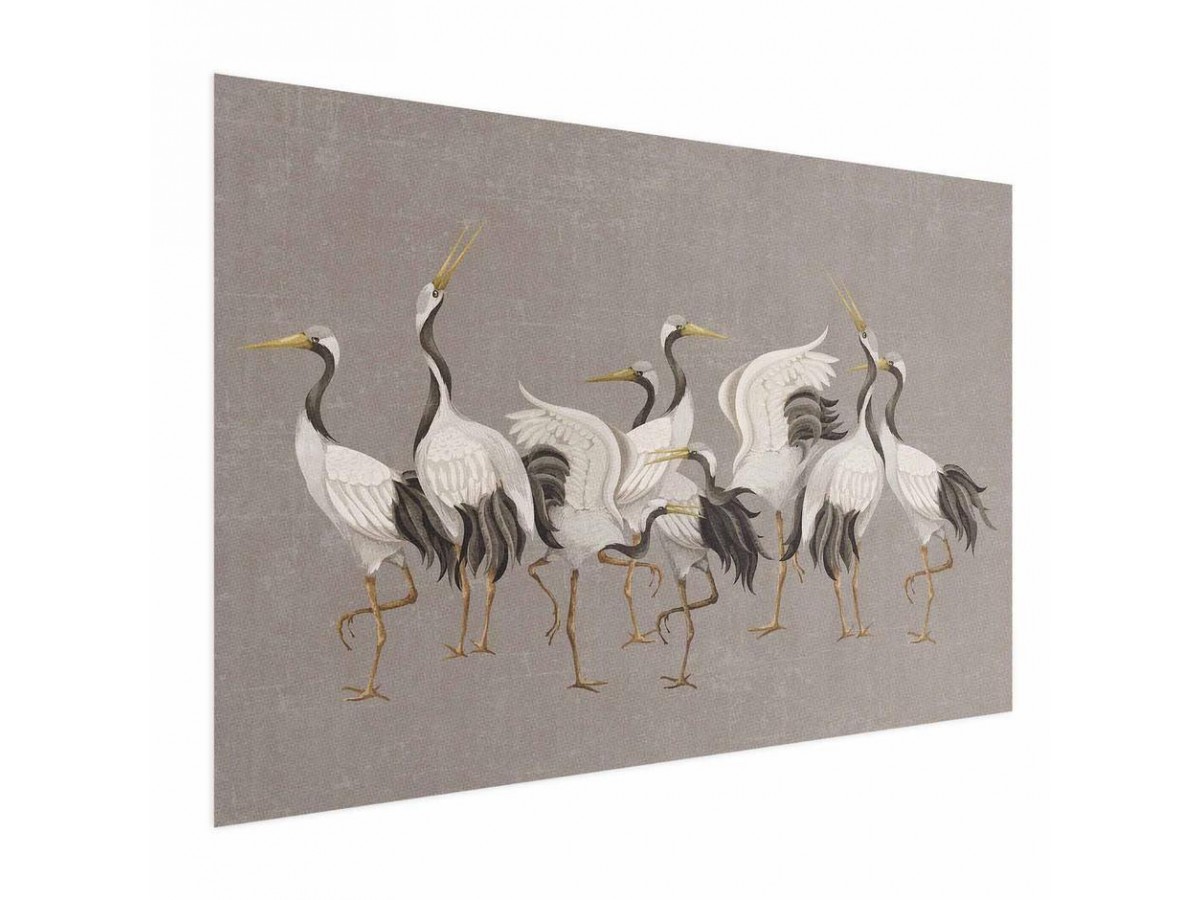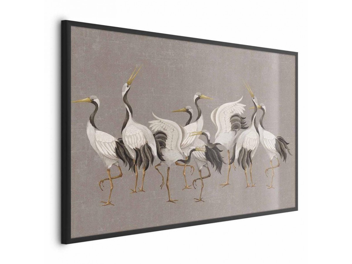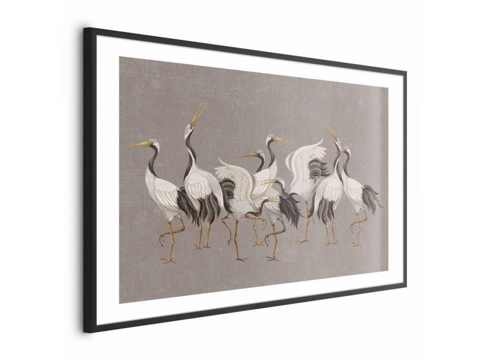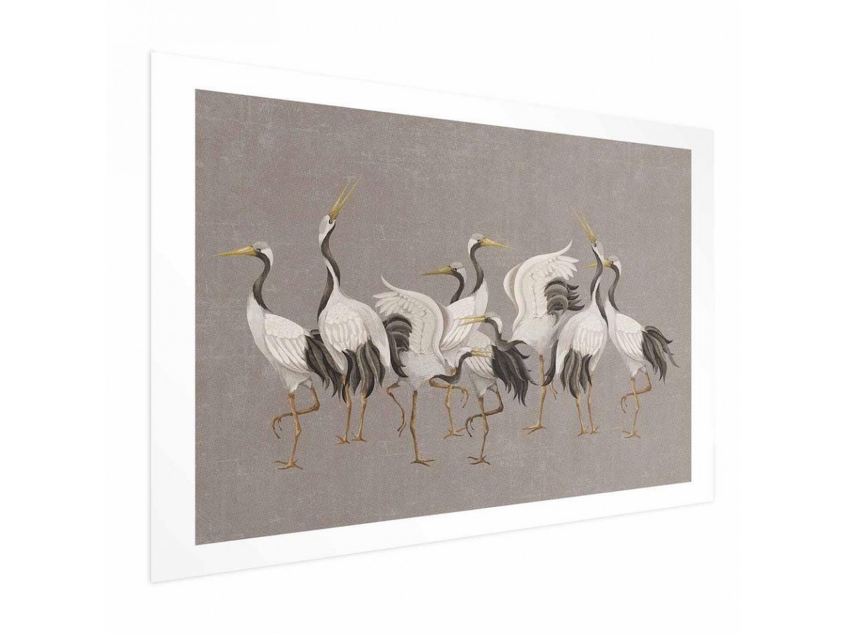 Poster - Crane Dance - light bird silhouettes on a warm-gray textured background