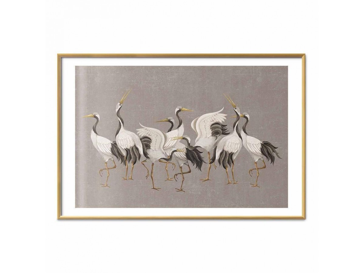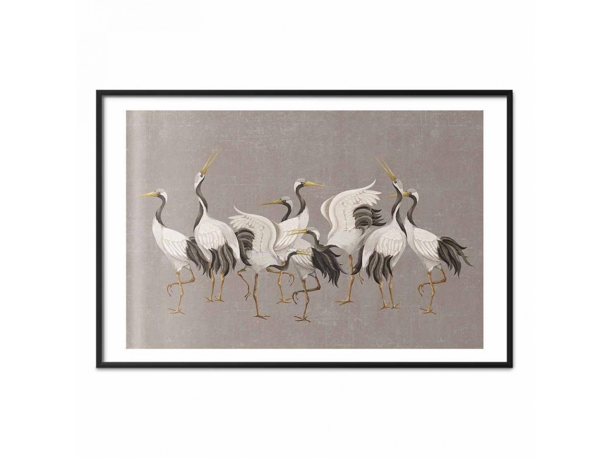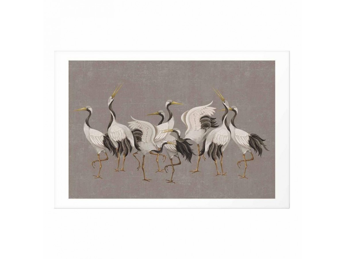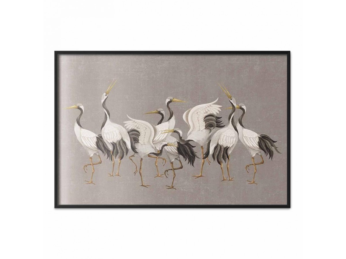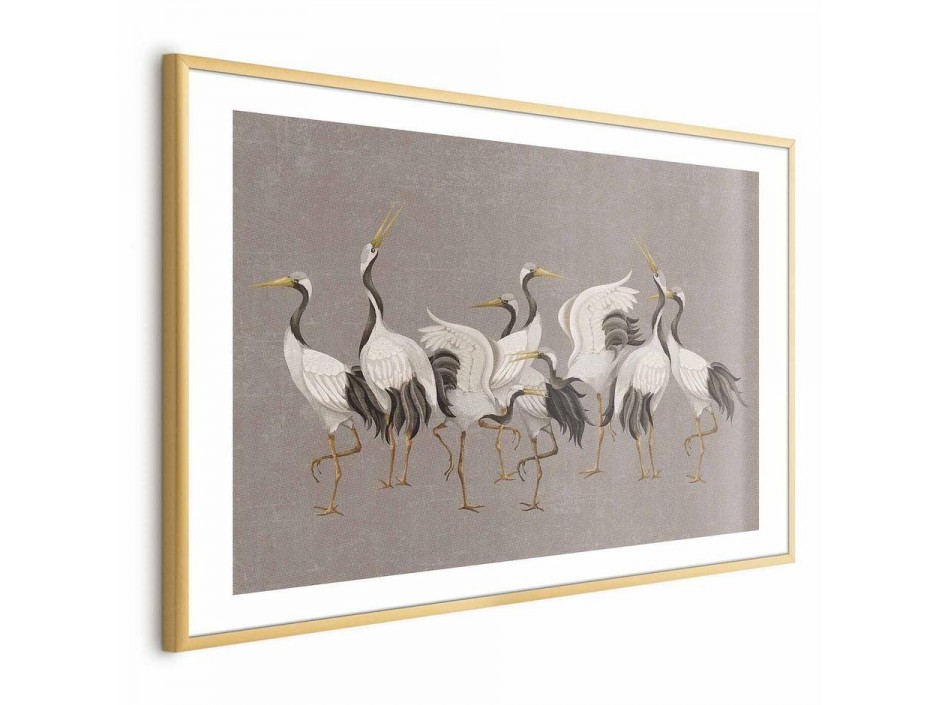 Poster - Crane Dance - light bird silhouettes on a warm-gray textured background