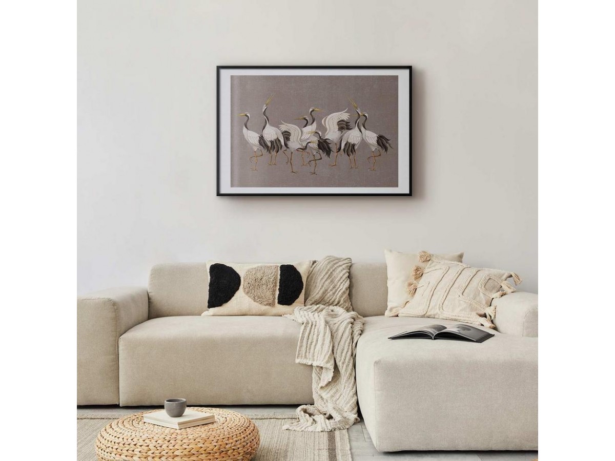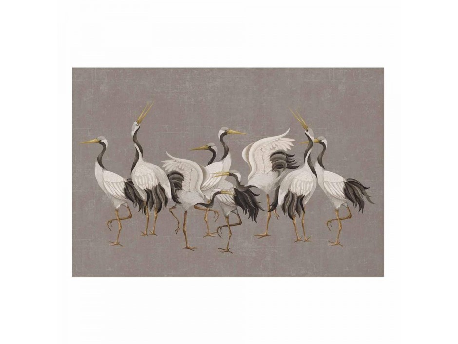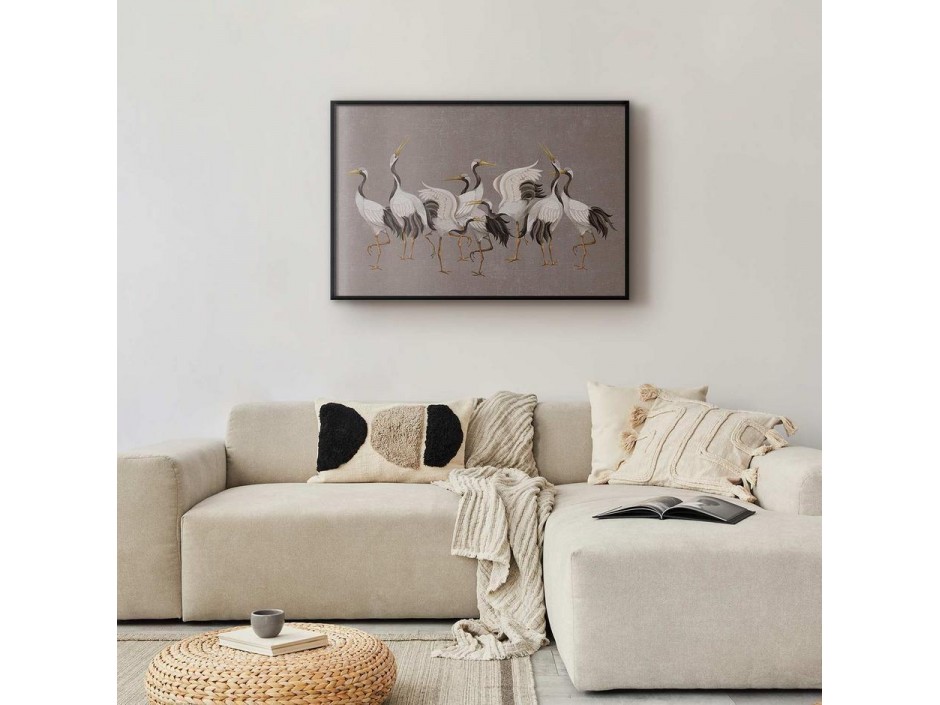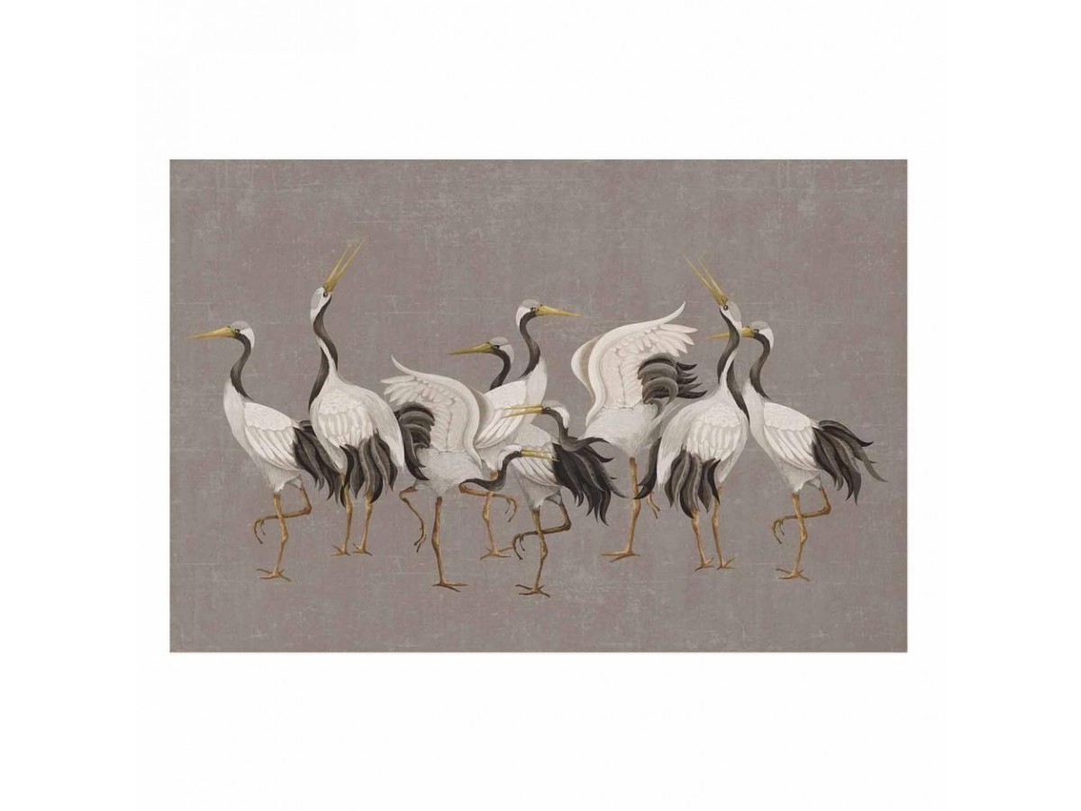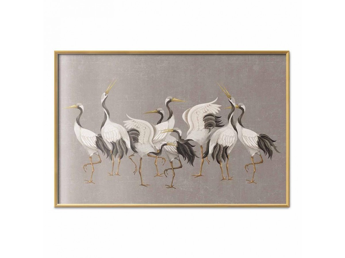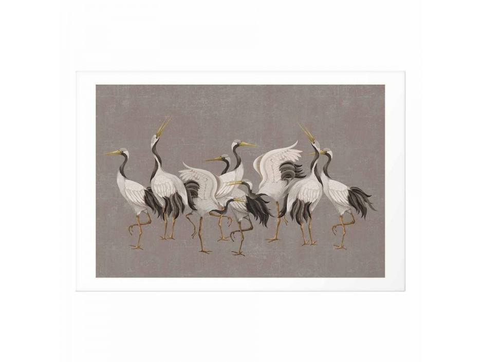 Poster - Crane Dance - light bird silhouettes on a warm-gray textured background