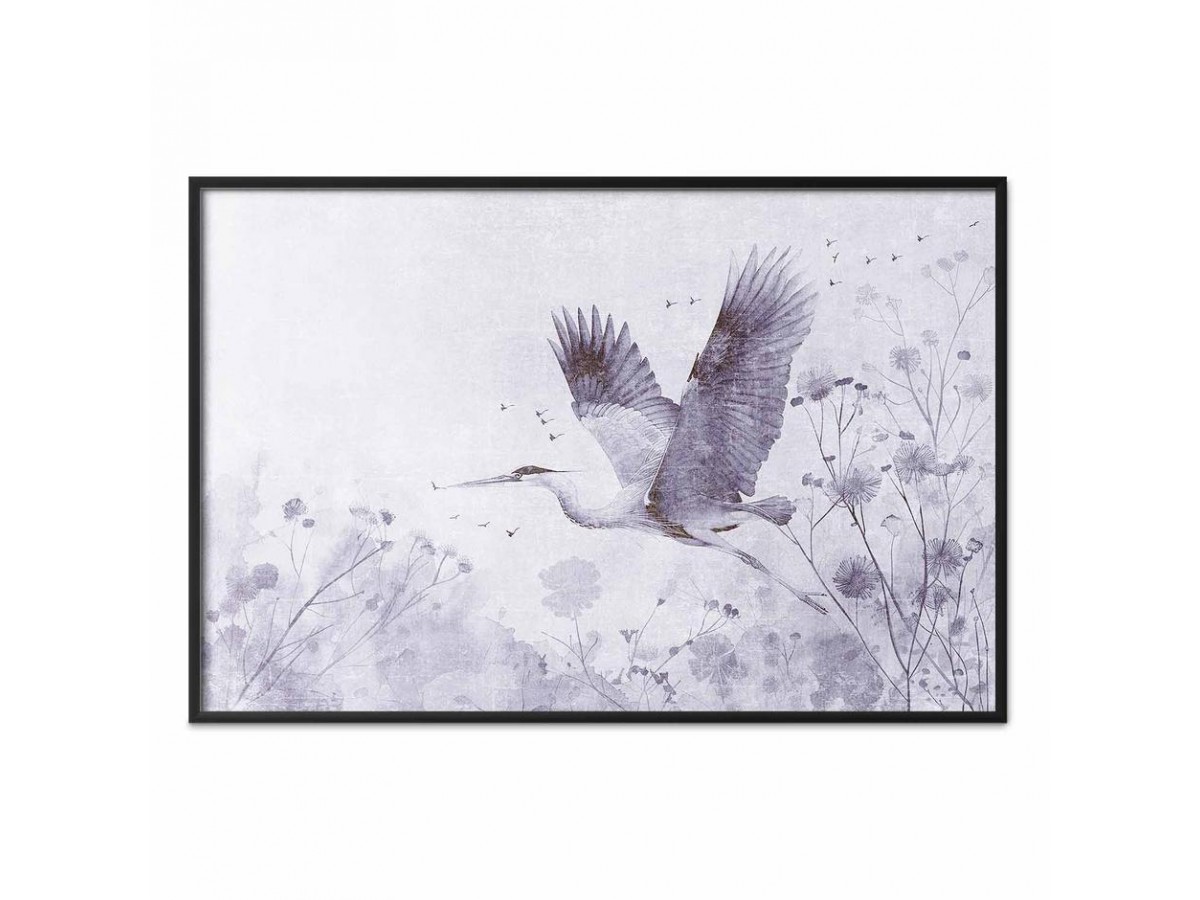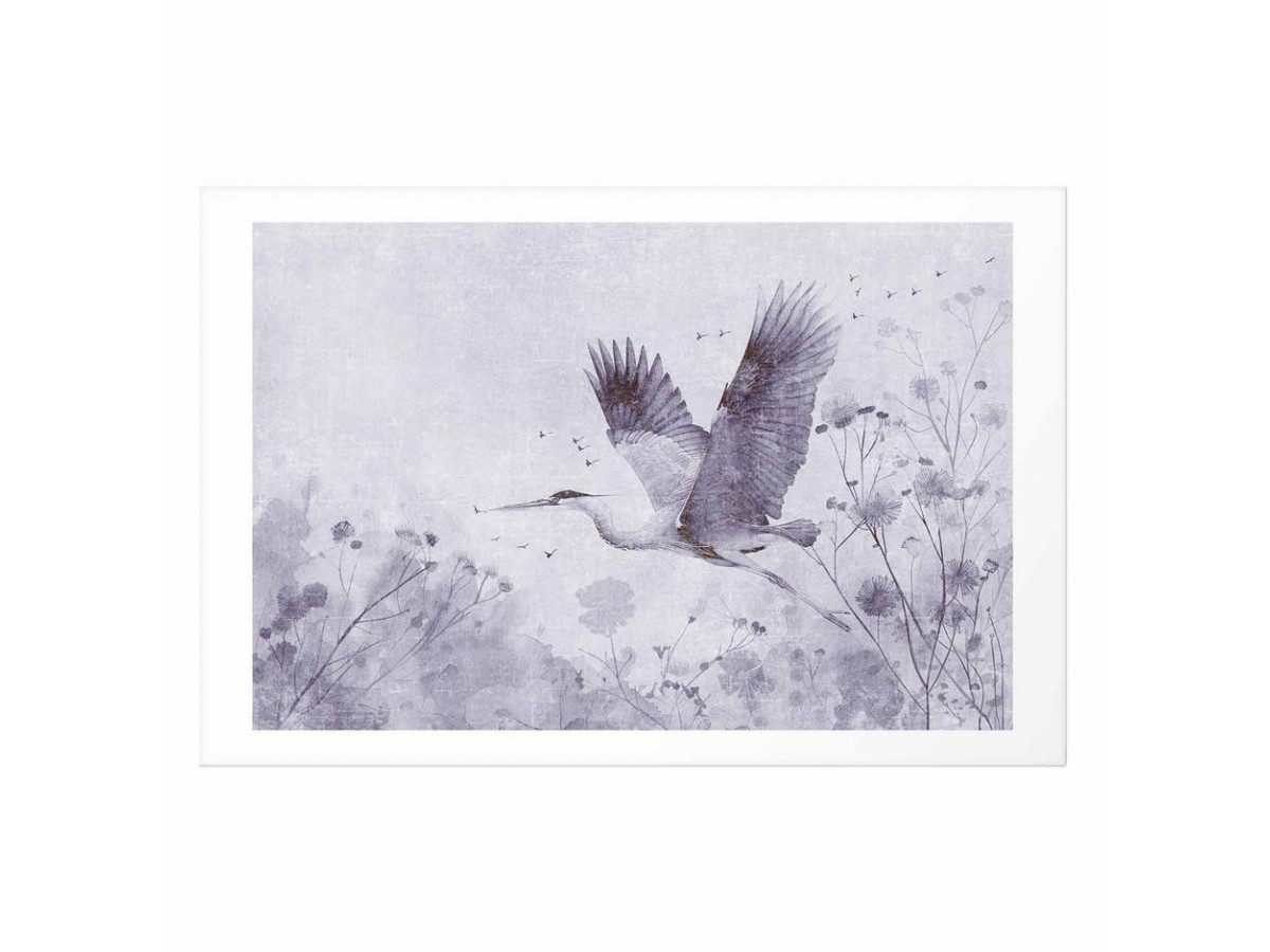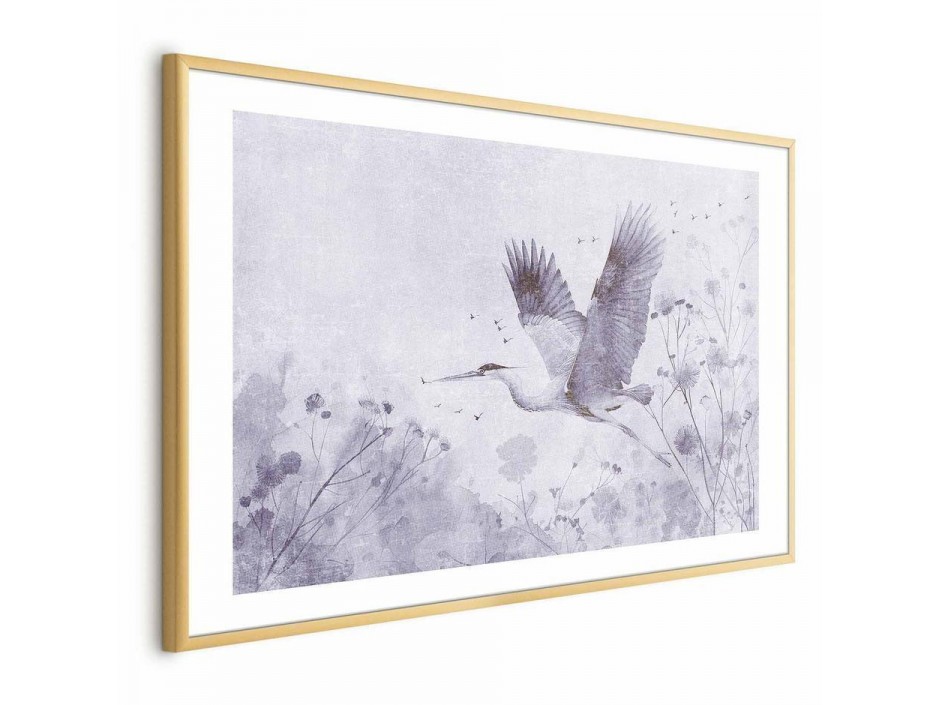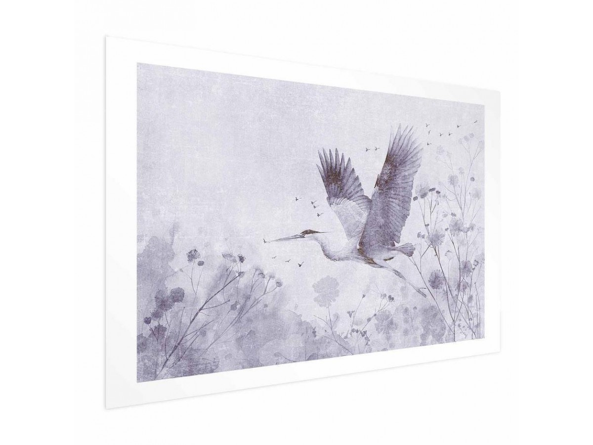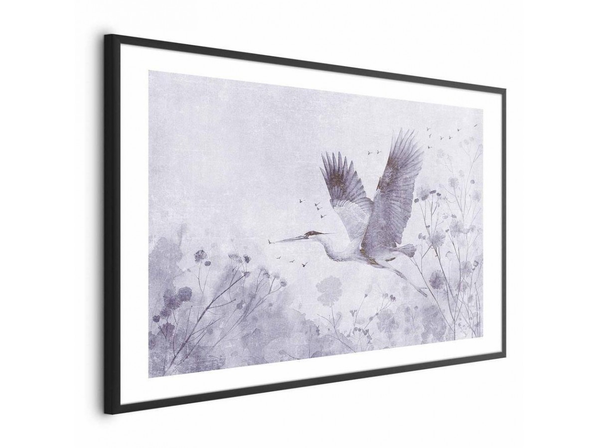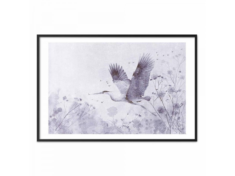 Poster - Majestic Flight - crane in flight in a monochromatic, cool color palette
