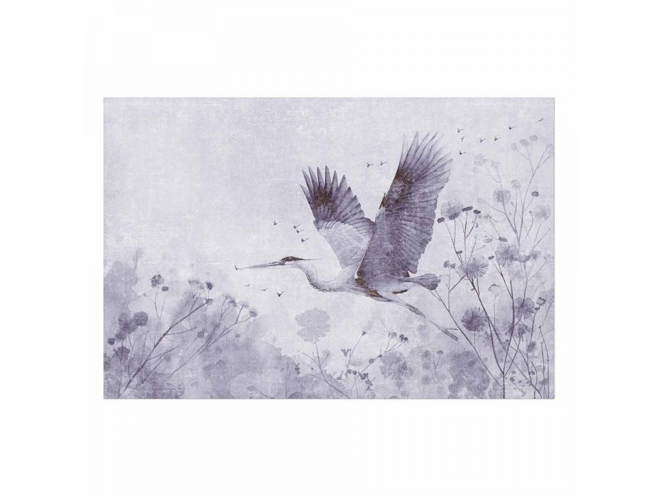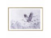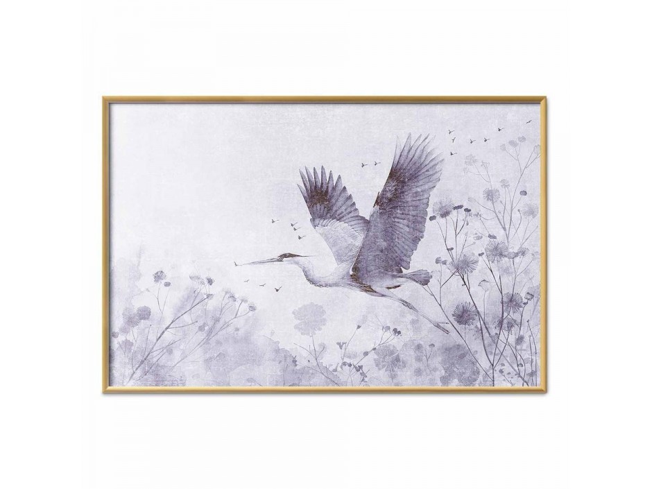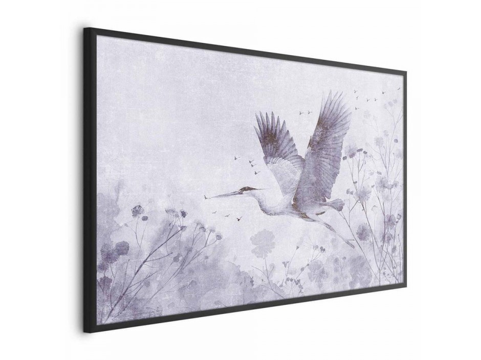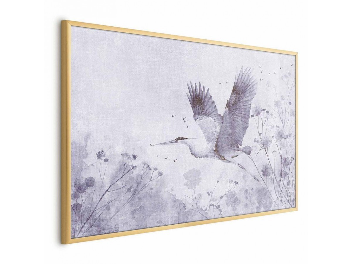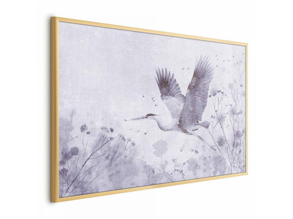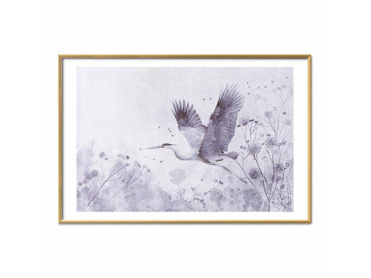 Poster - Majestic Flight - crane in flight in a monochromatic, cool color palette