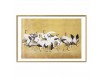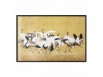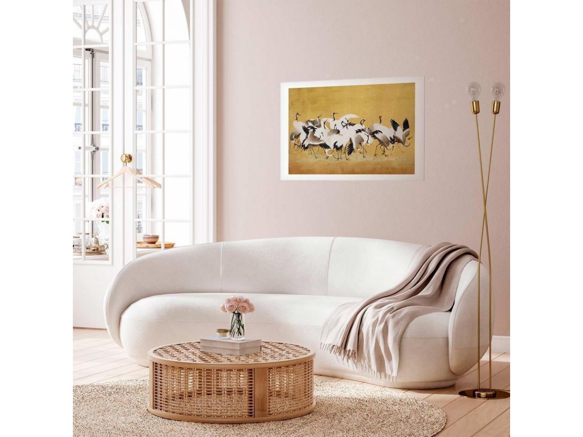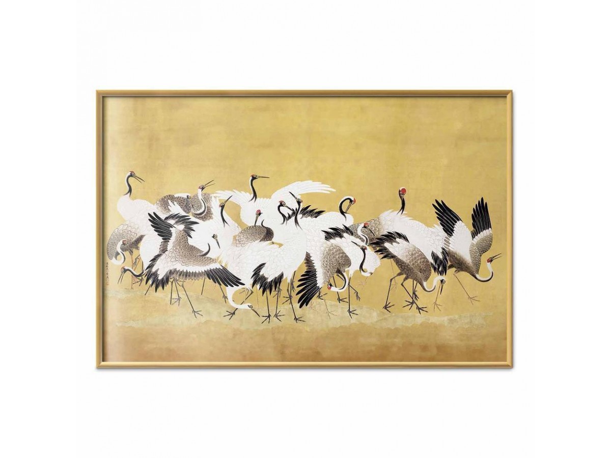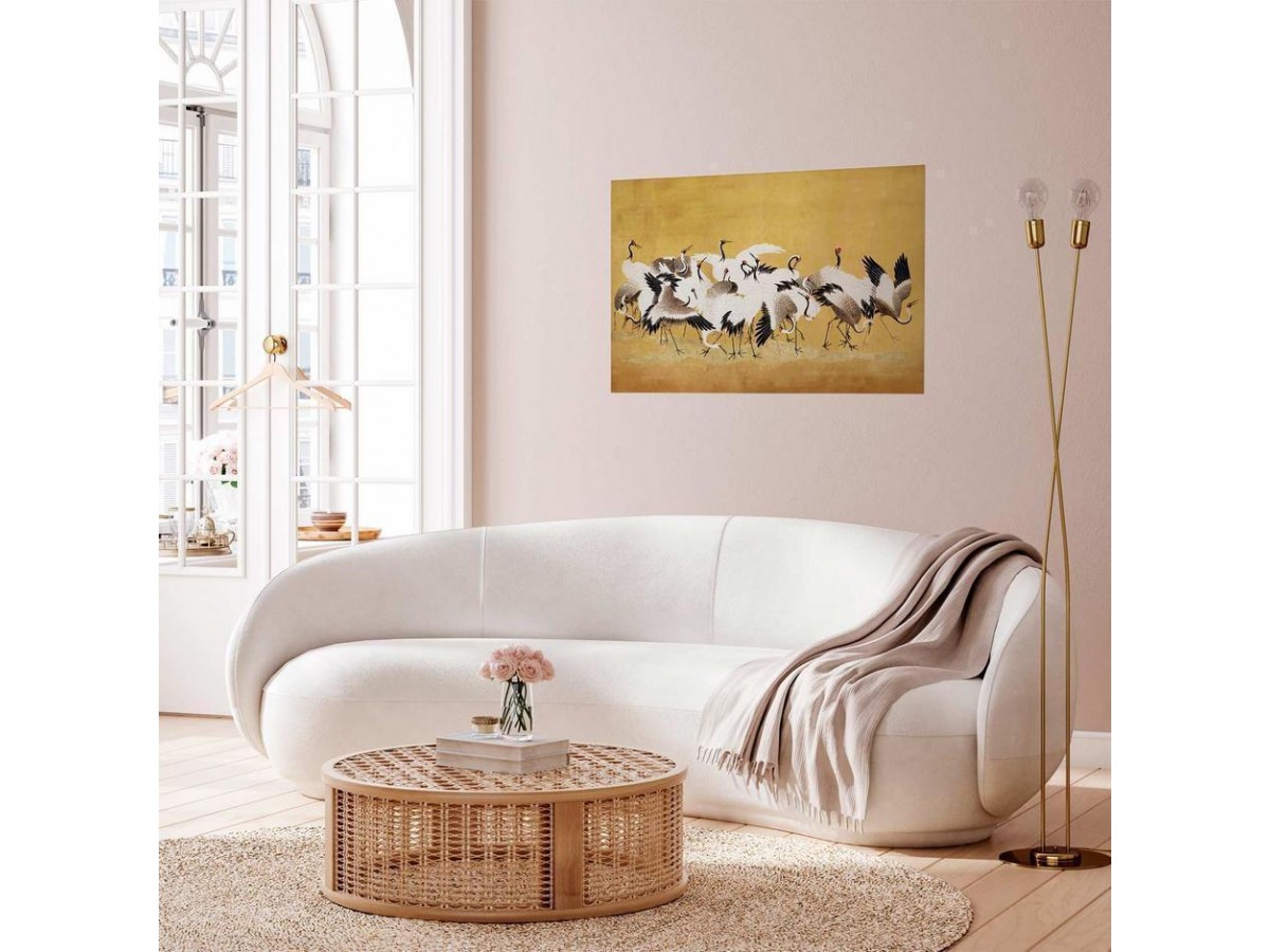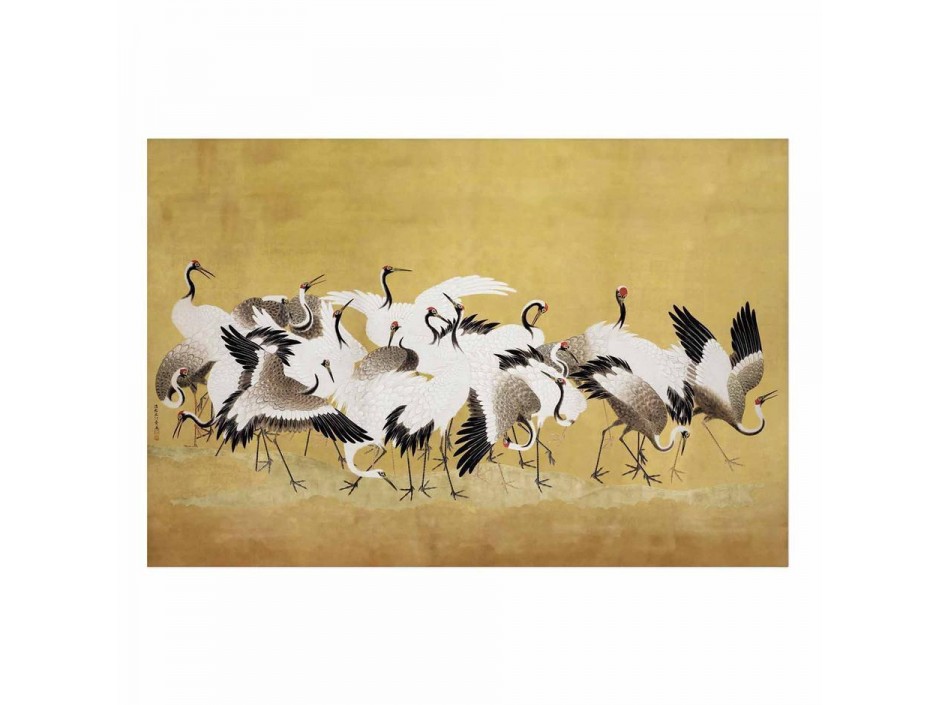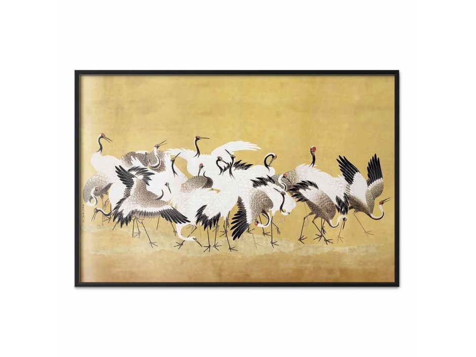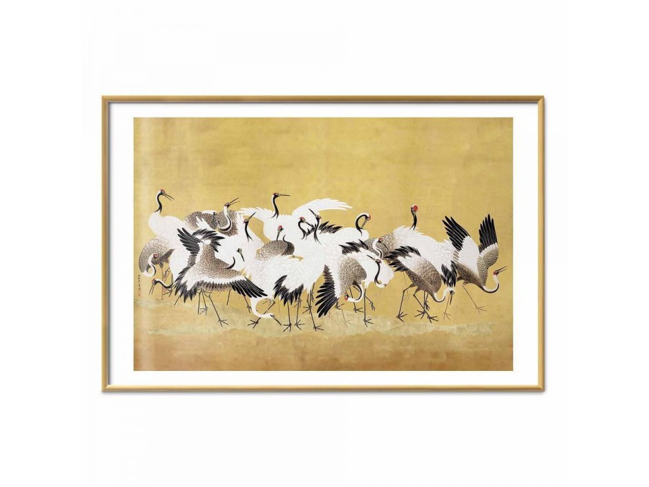 Poster - Japanese Cranes - a flock of birds against a golden background based on the painting of Ishida Yūtei