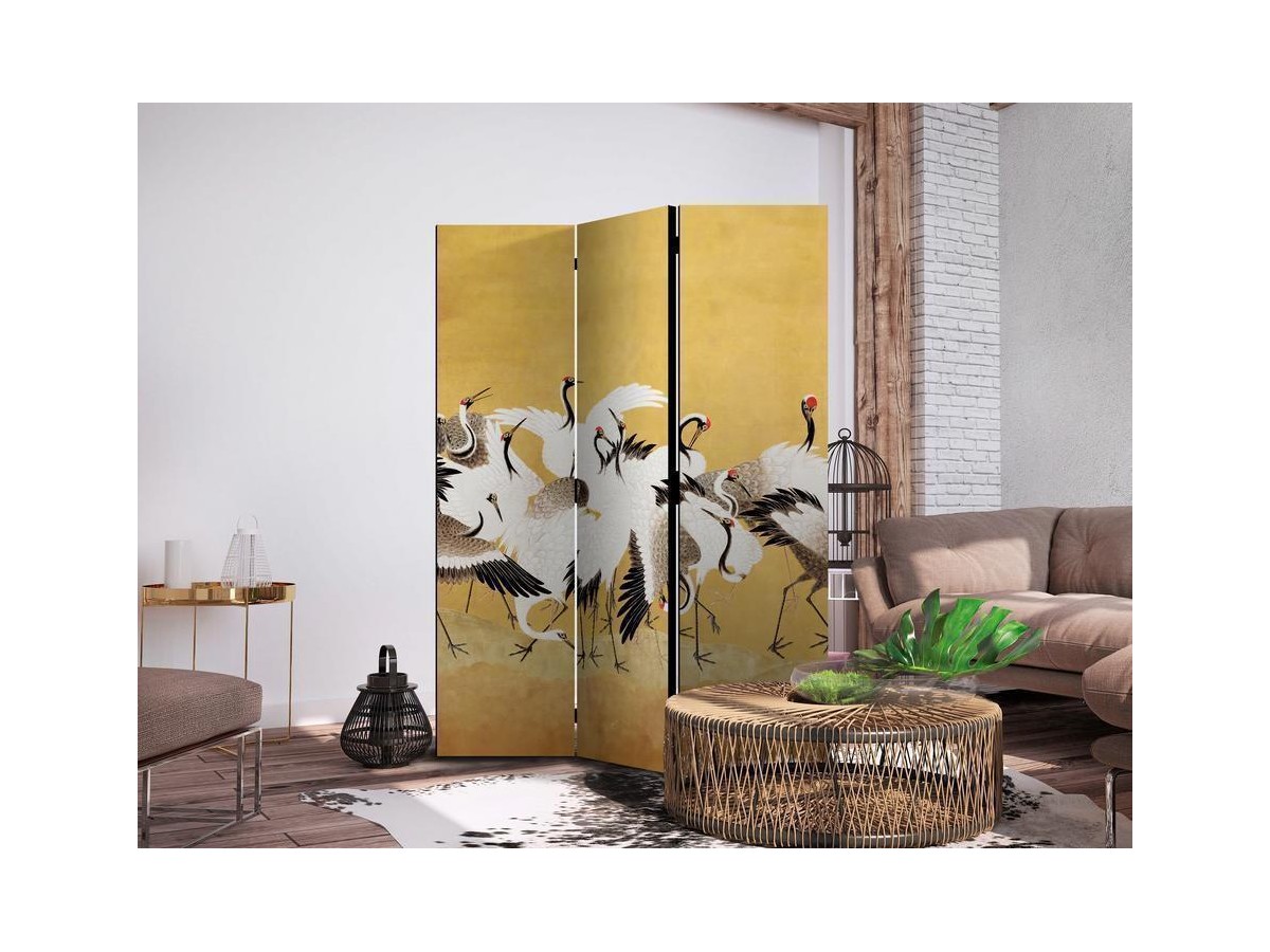 Paravent intérieur "Paravent - Japanese cranes - a flock of birds against a golden background based on a painting by Ishida Yūtei"Les paravents décoratifs sont certainement une idée originale dans le domaine de la décoration...