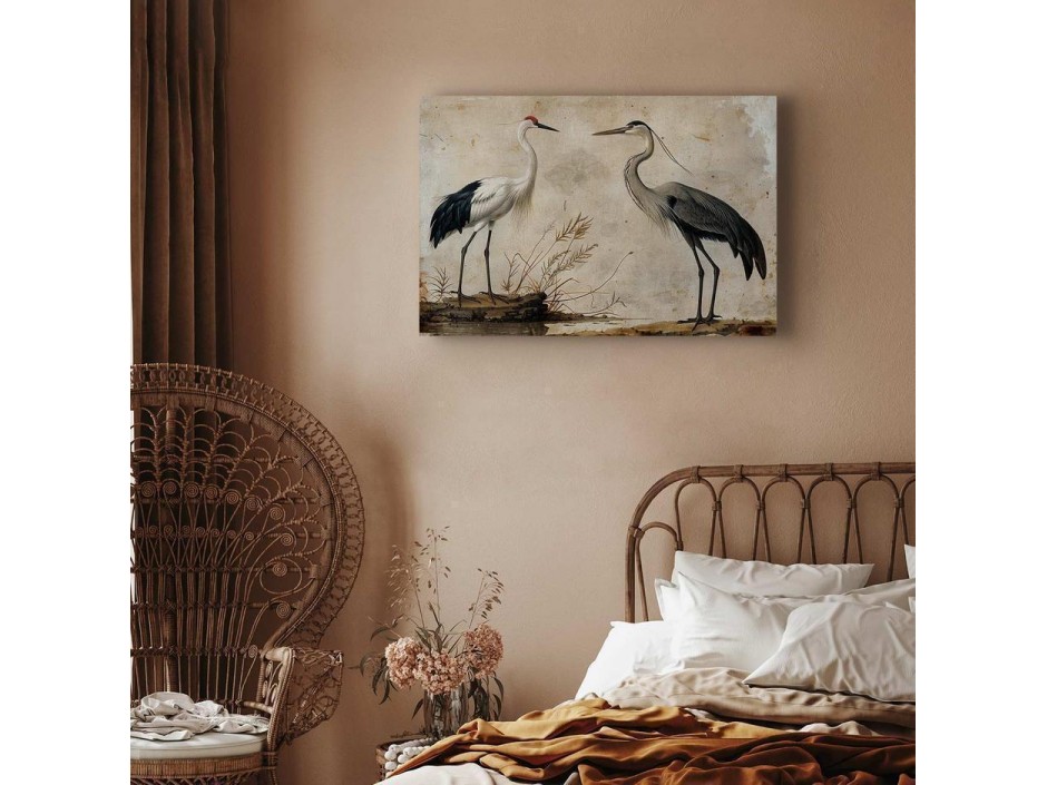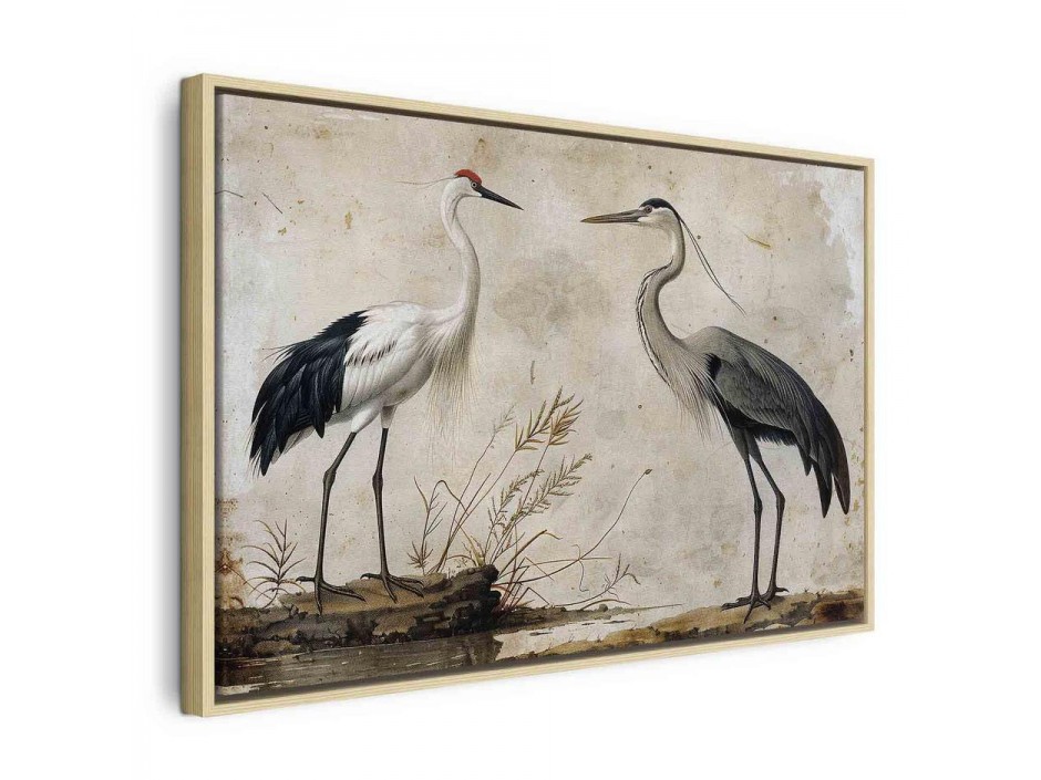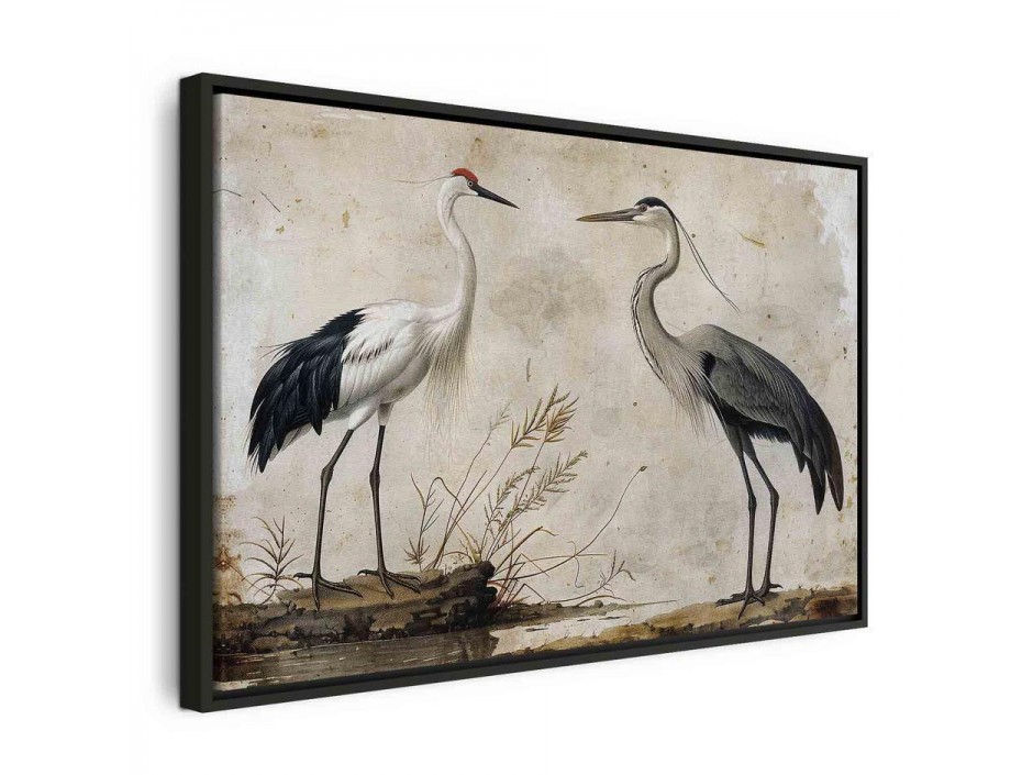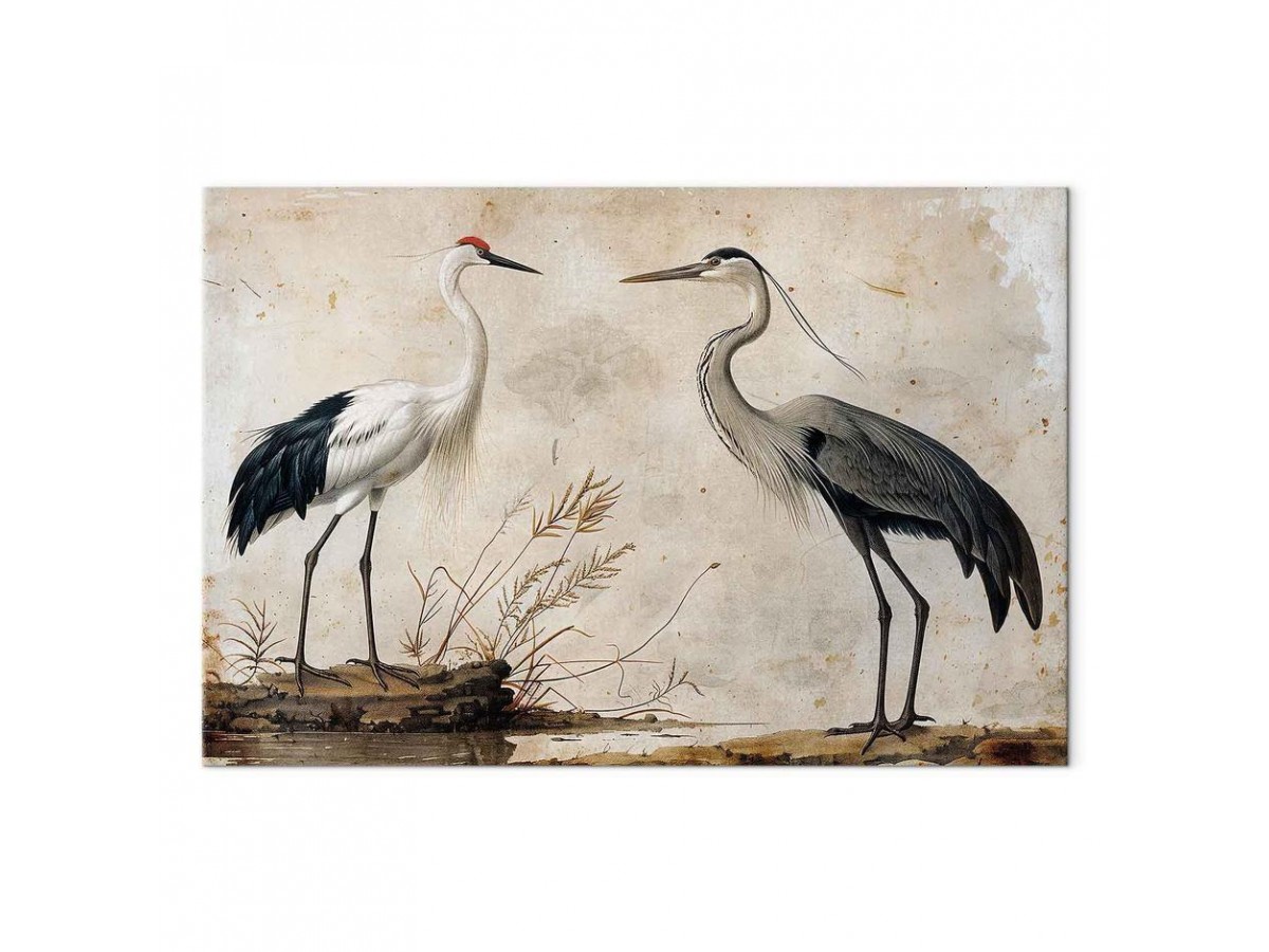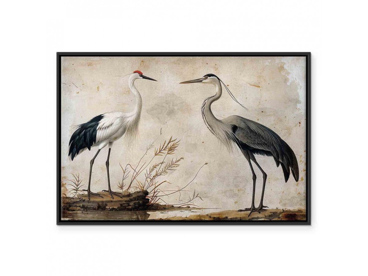 Tableau - Birds from an old engraving - vintage-style illustration depicting a heron and a crane