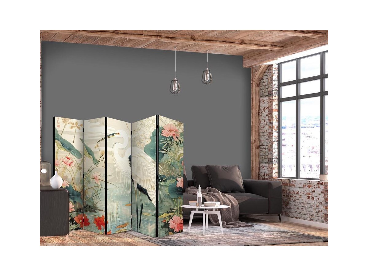Paravent intérieur "Paravent - By an Asian pond - an illustration in the style of a Japanese engraving, depicting a heron"Les paravents décoratifs sont certainement une idée originale dans le domaine de la décoration intérieure. Les...