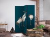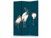 Paravent intérieur "Paravent - Evening by the pond - a group of cranes drawn with dry pastels on a dark turquoise background"Les paravents décoratifs sont certainement une idée originale dans le domaine de la décoration intérieure. Les...