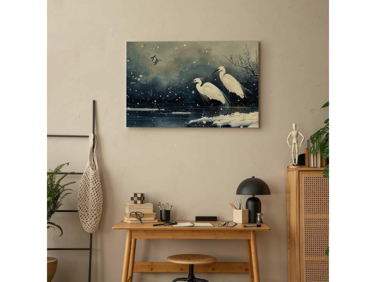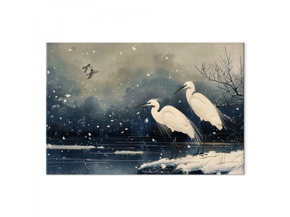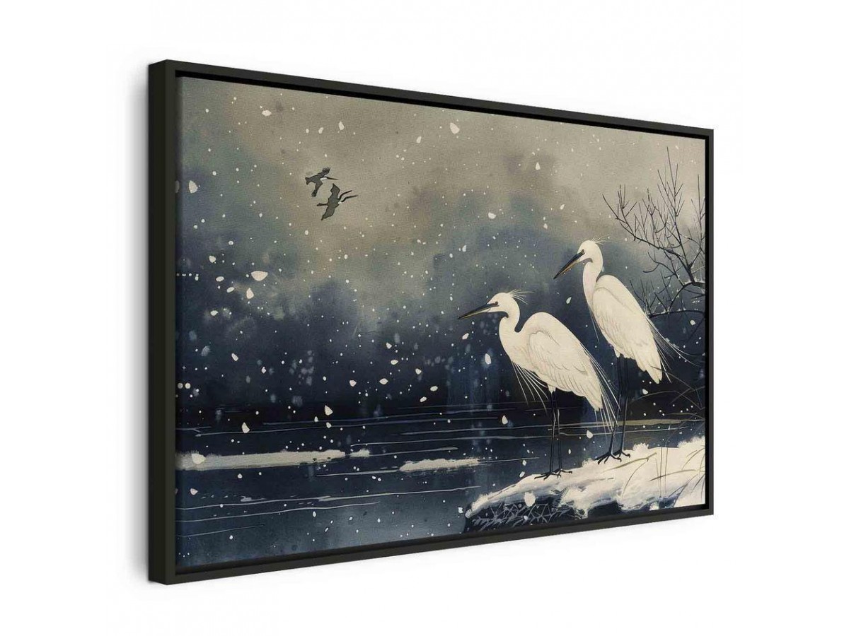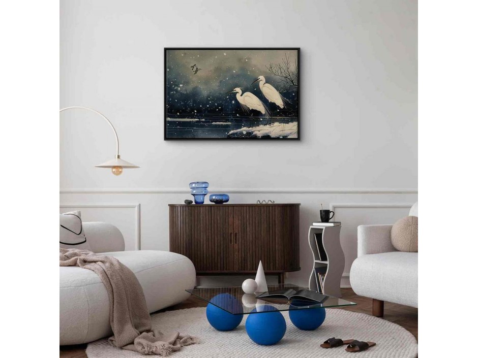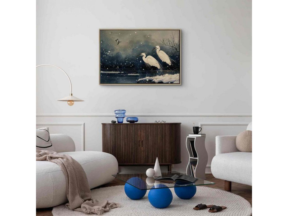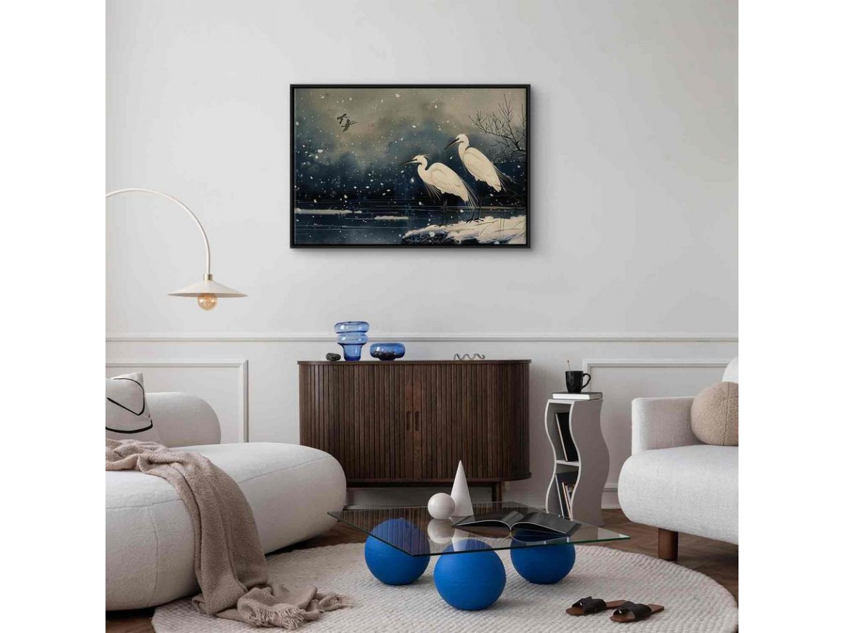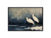 Tableau - Herons over a winter pond - Japanese-style illustration in dark colours