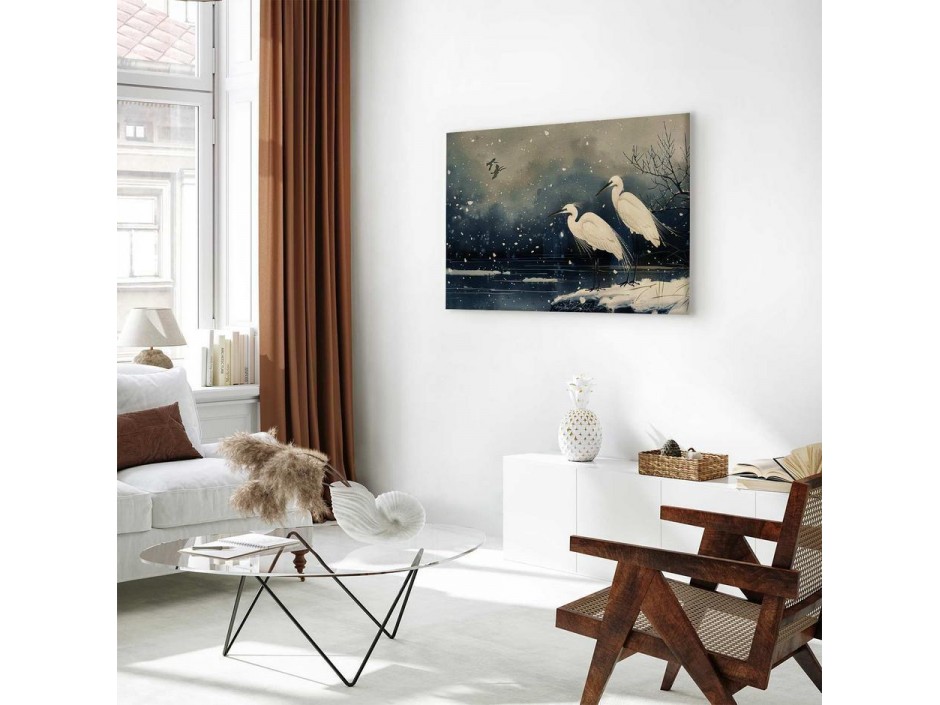 Les tableaux disponibles dans notre offre sont créés à l’aide de l'impression numérique sur toile de la plus haute qualité pour embellir votre intérieur. L’impression numérique sur toile sous la forme d’un tableau unit la tradition de la peinture sur toile avec la technologie moderne. Un effet final de ce mariage est le tableau moderne "Tableau - Herons over a winter pond - Japanese-style illustration in dark colours" qui peut s’accorder parfaitement avec le style de votre pièce. Les tableaux complètent la décoration de chaque intérieur et lui donnent du caractère. La décoration murale sous la forme des tableaux constitue la dernière touche dans la décoration d’intérieur. Les tableaux déco complètent la décoration de chaque espace et la rendent plus accueillante. Souvent, ils constituent une touche personnelle dans l’intérieur, en reflétant la personnalité et le goût des habitants. Les tableaux déco que nous vous proposons dans notre offre sont des impressions numériques de la plus haute qualité réalisées sur toile. Cette technique de réalisation permet d’obtenir une image possédant une richesse de détails dont les couleurs sont vives et très fraîches. Un tableau moderne s’accorde parfaitement à des intérieurs aménagés dans le style moderne, mais aussi dans le style minimaliste et dans le style zen.