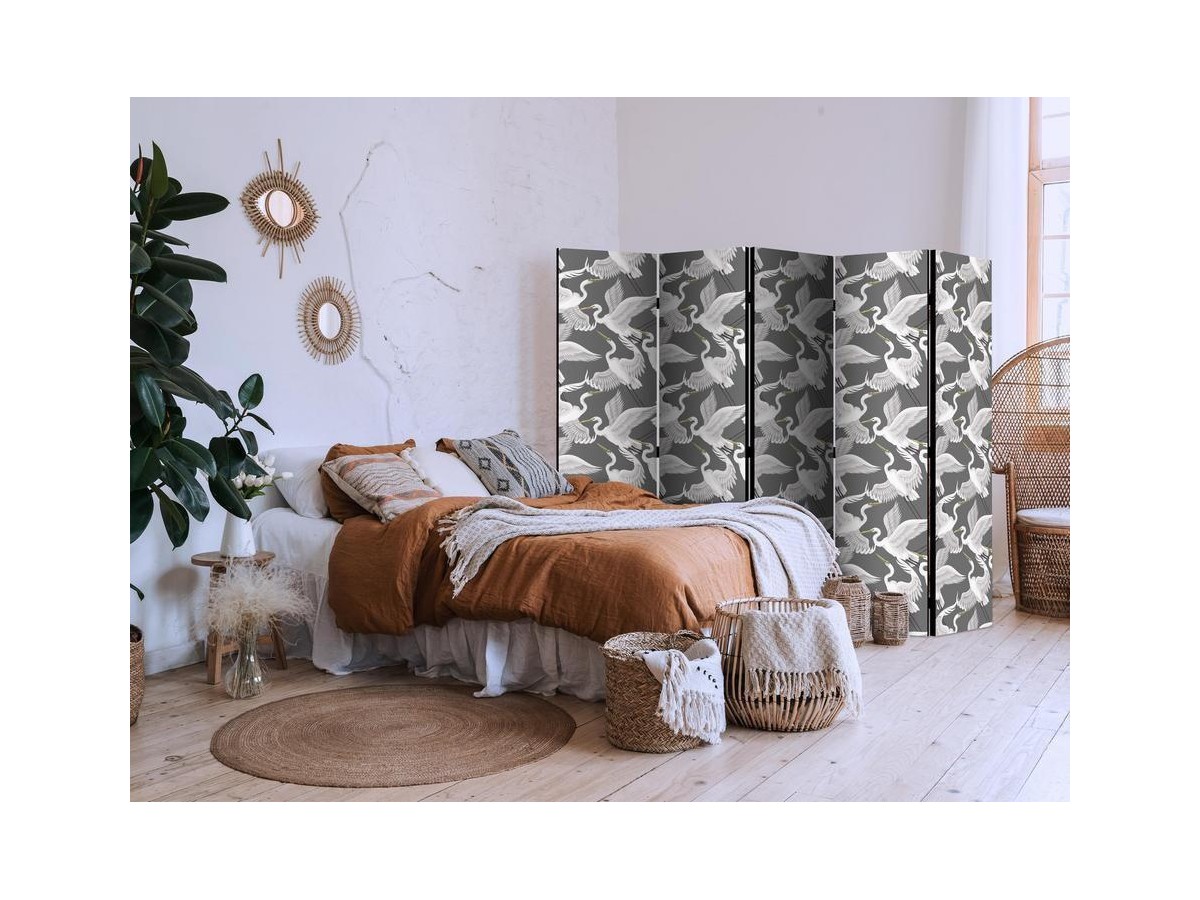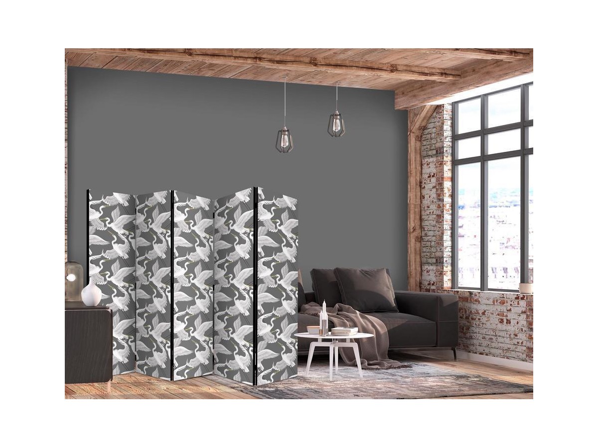 Les paravents décoratifs sont certainement une idée originale dans le domaine de la décoration intérieure. Les paravents remplissent un rôle décoratif, mais aussi bien pratique et fonctionnel. En effet, un paravent intérieur "Paravent - Pastel birds - a delicate pattern of white and grey herons on a light pink background" est un meuble formant une cloison amovible et repliable qui peut servir pour délimiter un espace et diviser une grande pièce en deux espaces séparés. Le paravent intérieur est une invention qui est apparue pour la première fois en Chine. Depuis le début de leur existence, les paravents remplissaient des différentes fonctions, comme protéger contre les courants d'air ou bien encore créer un espace isolé pour l'intimité. De nos jours, le paravent intérieur est une belle décoration intérieure, qui permet aussi de gérer l'espace d’une ou de plusieurs pièces selon notre volonté. Le paravent intérieur est également utilisé dans les locaux de service, comme un coiffeur, un cabinet médical ou un bureau comptable pour créer un espace propice à l’intimité ou bien encore à la concentration.