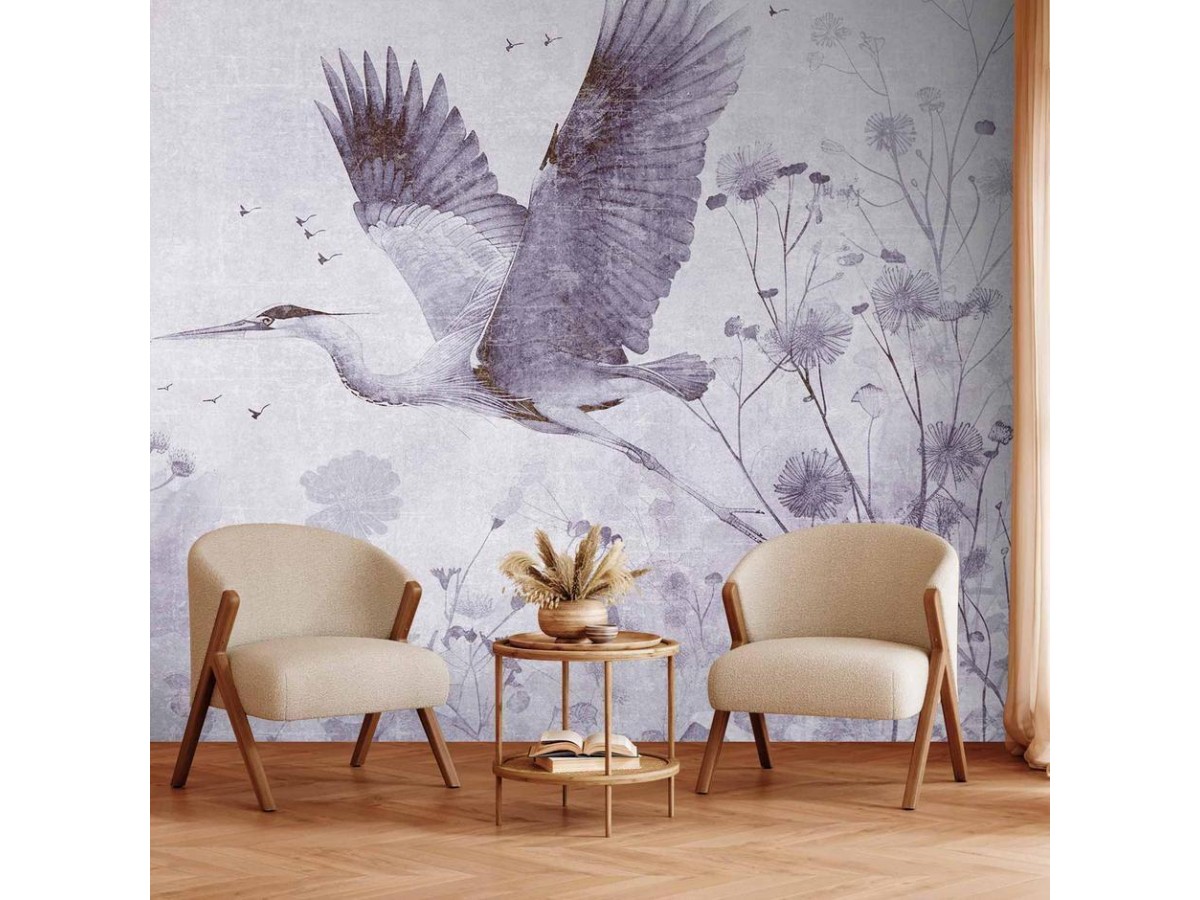Papier peint - Majestic flight - a crane in flight in monochrome