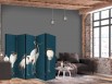 Paravent intérieur "Paravent - Evening by the pond - a group of cranes drawn with dry pastels on a dark turquoise background"Les paravents décoratifs sont certainement une idée originale dans le domaine de la décoration intérieure. Les...