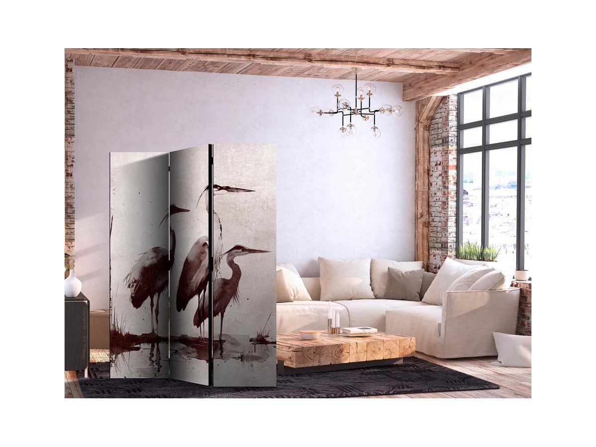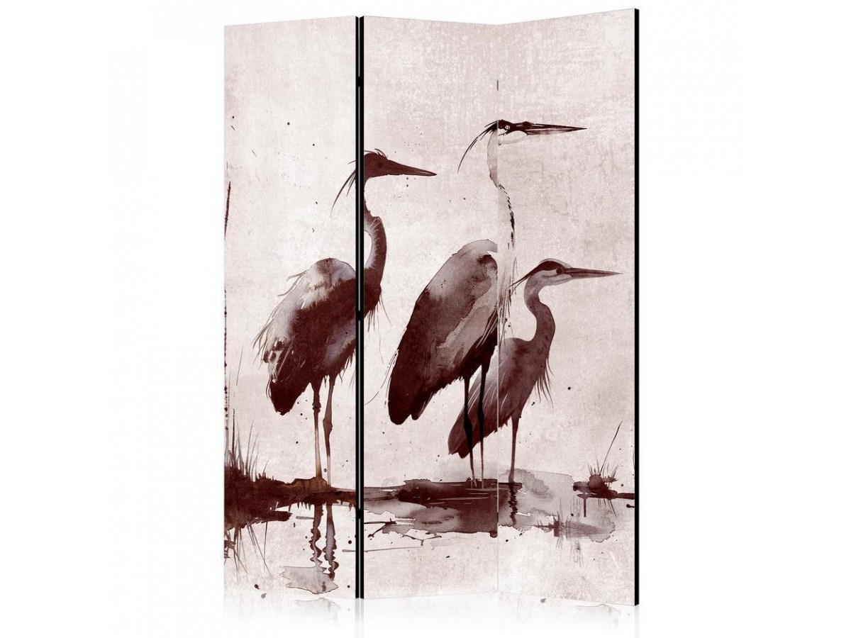 Un paravent décoratif "Paravent - Herons painted with ink" est composé de panneaux orientables, appelés volets, en bois encadrés d'un châssis de bois et réunis par des charnières. Le paravent décoratif disponible dans notre offre se compose de trois ou de cinq parties. Tous les paravents que nous proposons ont une impression de haute qualité sur l’entoilage qui peut être une belle décoration d'intérieur. L'entoilage d’un paravent déco est tendu sur un cadre en bois solide et léger en même temps. Les panneaux sont finis avec un ruban de satin. Les charnières métalliques sont durables et très solides.Caractéristique technique