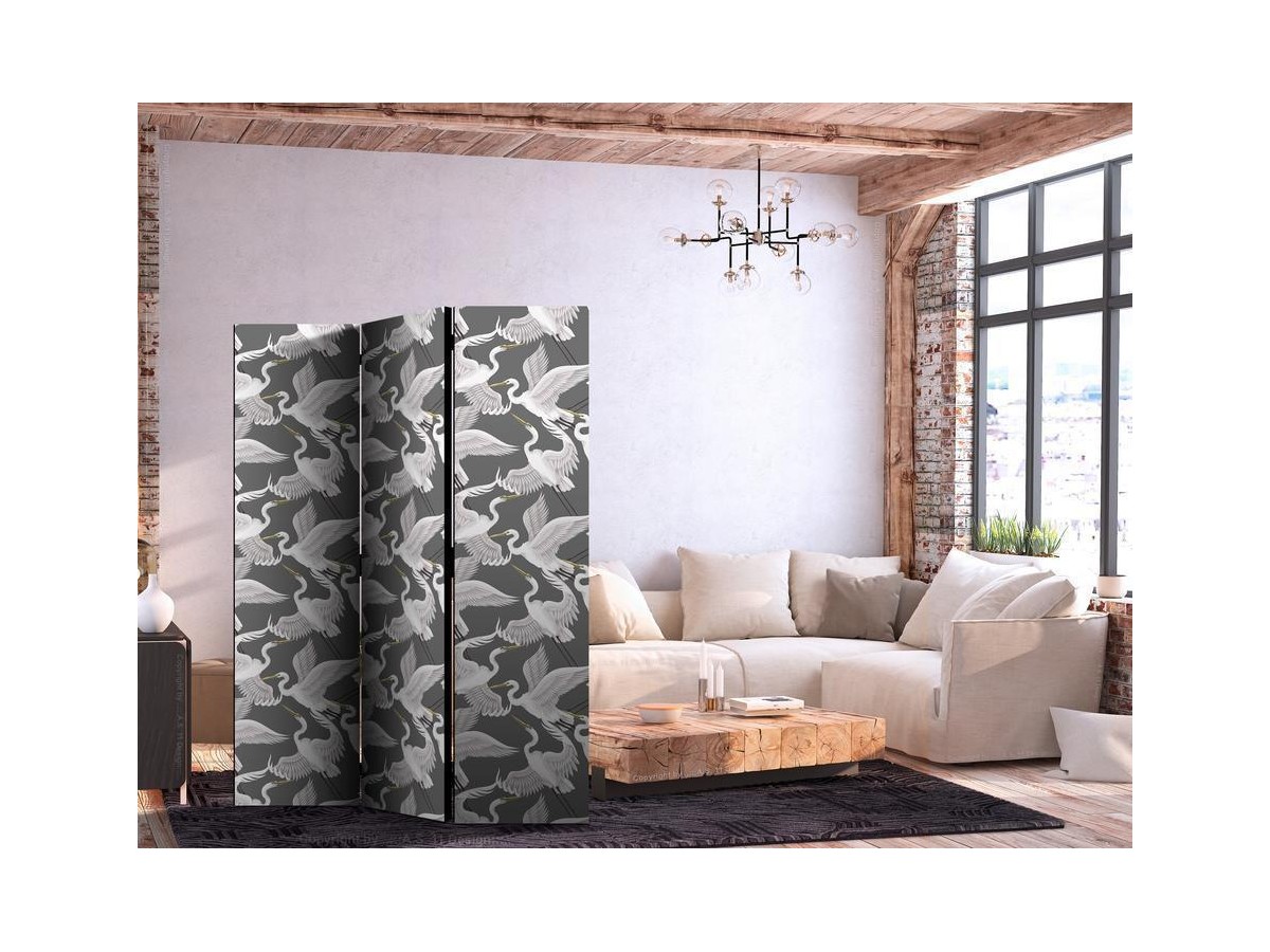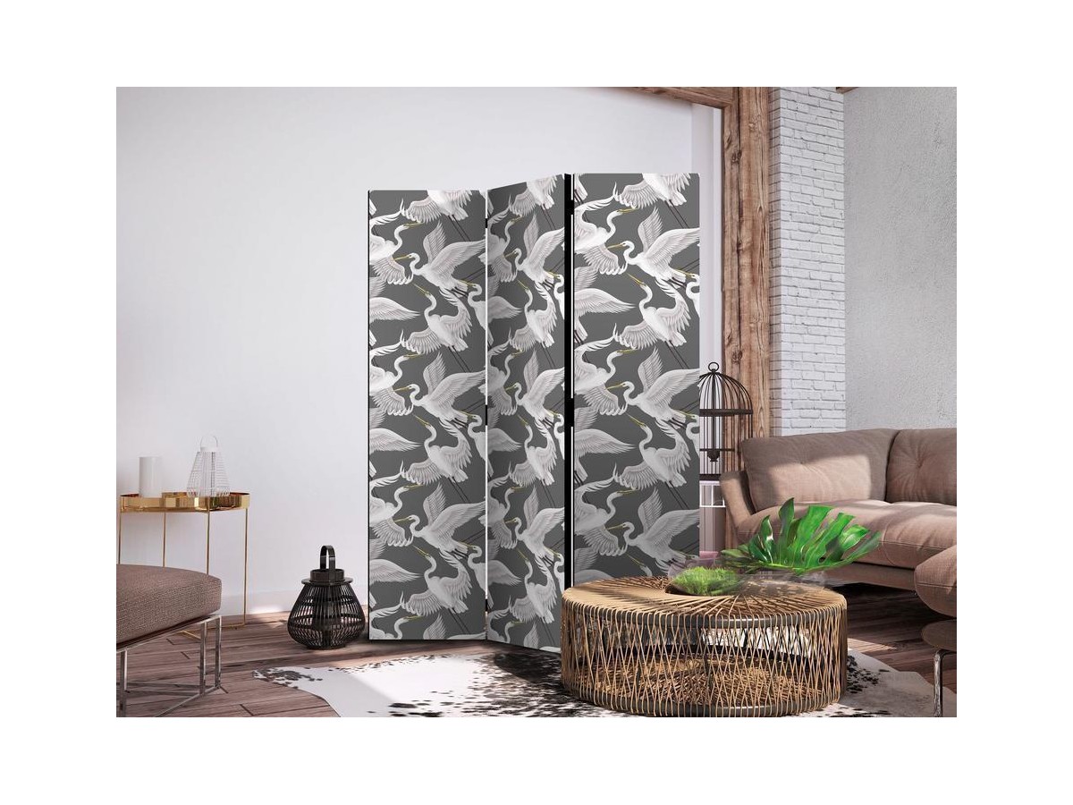 Les paravents décoratifs sont certainement une idée originale dans le domaine de la décoration intérieure. Les paravents remplissent un rôle décoratif, mais aussi bien pratique et fonctionnel. En effet, un paravent intérieur "Paravent - Pastel birds - a delicate pattern of white and grey herons on a light pink background" est un meuble formant une cloison amovible et repliable qui peut servir pour délimiter un espace et diviser une grande pièce en deux espaces séparés. Le paravent intérieur est une invention qui est apparue pour la première fois en Chine. Depuis le début de leur existence, les paravents remplissaient des différentes fonctions, comme protéger contre les courants d'air ou bien encore créer un espace isolé pour l'intimité. De nos jours, le paravent intérieur est une belle décoration intérieure, qui permet aussi de gérer l'espace d’une ou de plusieurs pièces selon notre volonté. Le paravent intérieur est également utilisé dans les locaux de service, comme un coiffeur, un cabinet médical ou un bureau comptable pour créer un espace propice à l’intimité ou bien encore à la concentration.