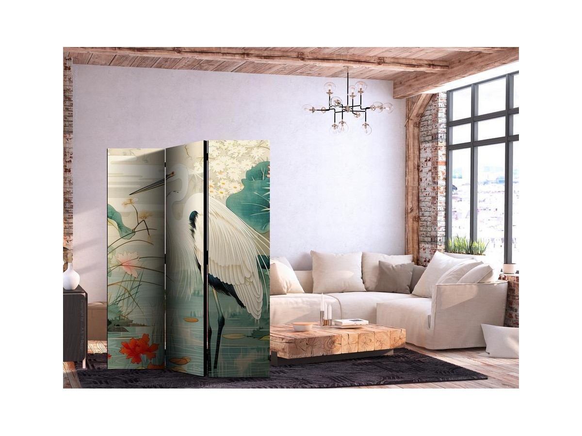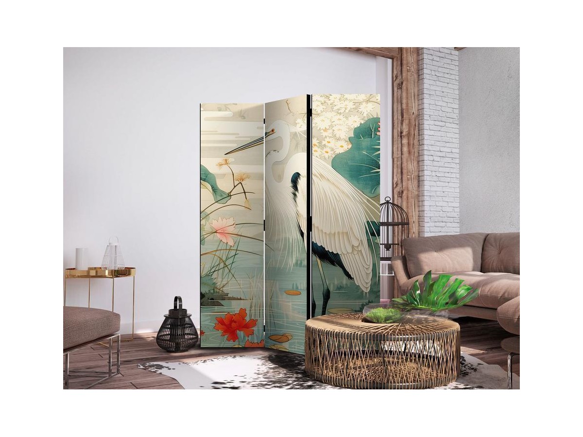 Paravent intérieur "Paravent - By an Asian pond - an illustration in the style of a Japanese engraving, depicting a heron"Les paravents décoratifs sont certainement une idée originale dans le domaine de la décoration intérieure. Les...