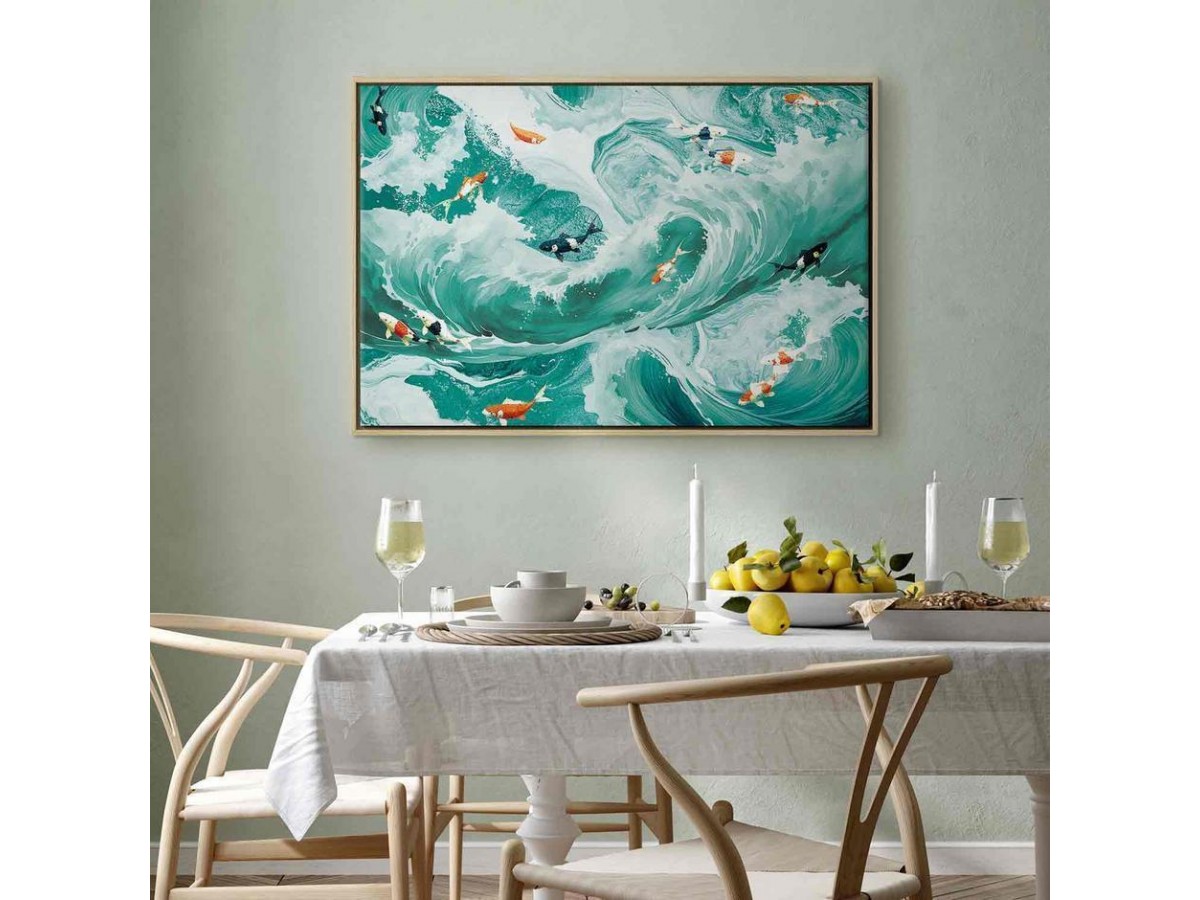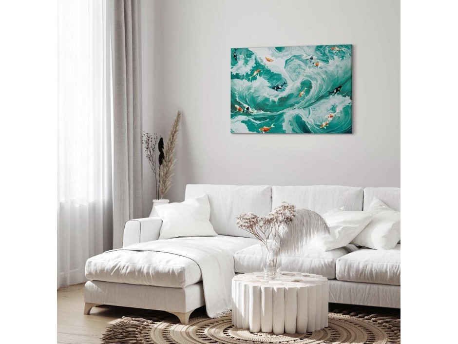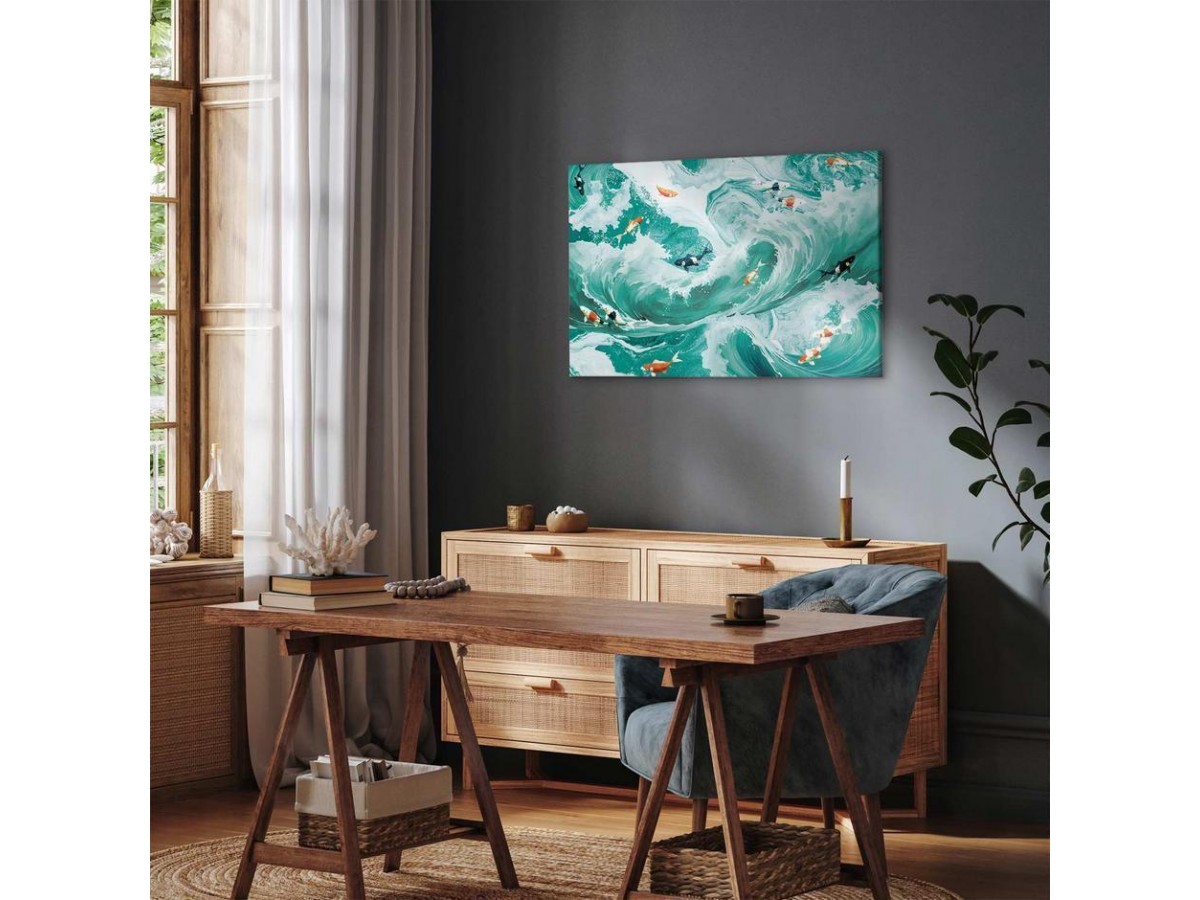 Les tableaux disponibles dans notre offre sont créés à l’aide de l'impression numérique sur toile de la plus haute qualité pour embellir votre intérieur. L’impression numérique sur toile sous la forme d’un tableau unit la tradition de la peinture sur toile avec la technologie moderne. Un effet final de ce mariage est le tableau moderne "Tableau - Fish and waves" qui peut s’accorder parfaitement avec le style de votre pièce. Les tableaux complètent la décoration de chaque intérieur et lui donnent du caractère. La décoration murale sous la forme des tableaux constitue la dernière touche dans la décoration d’intérieur. Les tableaux déco complètent la décoration de chaque espace et la rendent plus accueillante. Souvent, ils constituent une touche personnelle dans l’intérieur, en reflétant la personnalité et le goût des habitants. Les tableaux déco que nous vous proposons dans notre offre sont des impressions numériques de la plus haute qualité réalisées sur toile. Cette technique de réalisation permet d’obtenir une image possédant une richesse de détails dont les couleurs sont vives et très fraîches. Un tableau moderne s’accorde parfaitement à des intérieurs aménagés dans le style moderne, mais aussi dans le style minimaliste et dans le style zen.