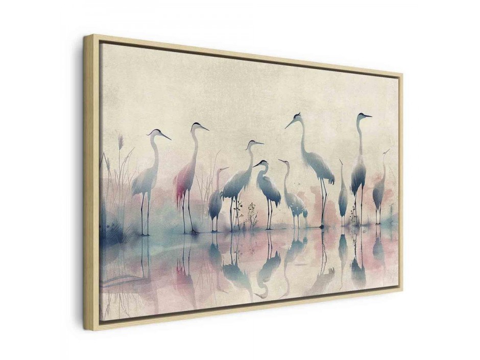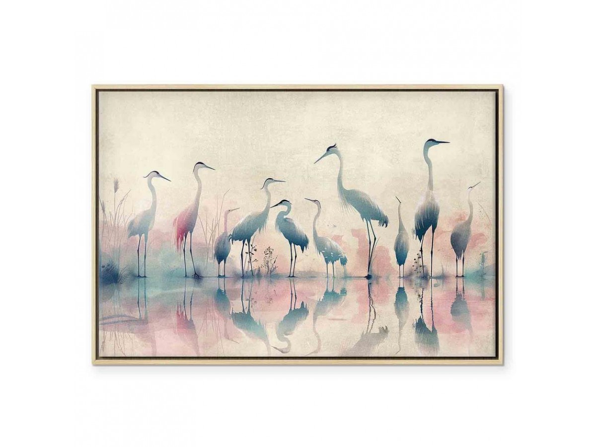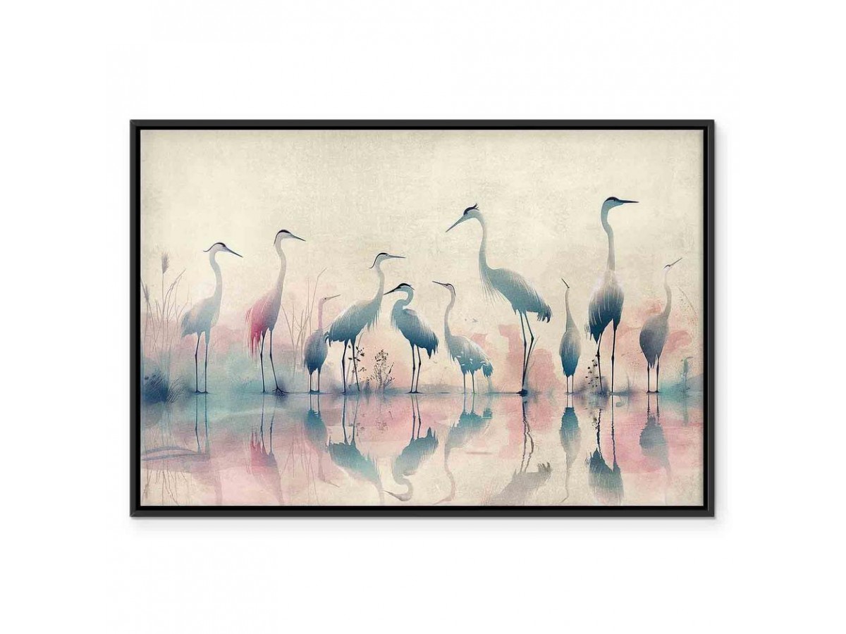 Tableau - Birds by the lake - herons painted in watercolour in delicate grey and pink colours