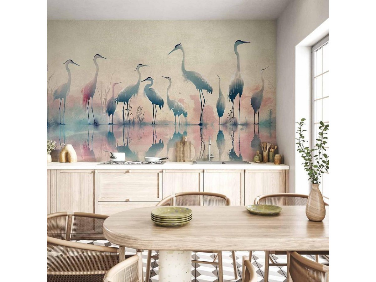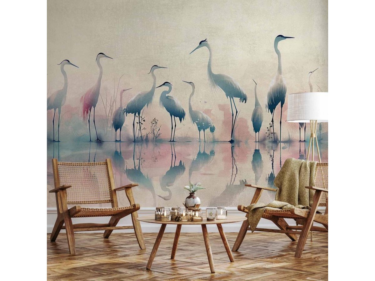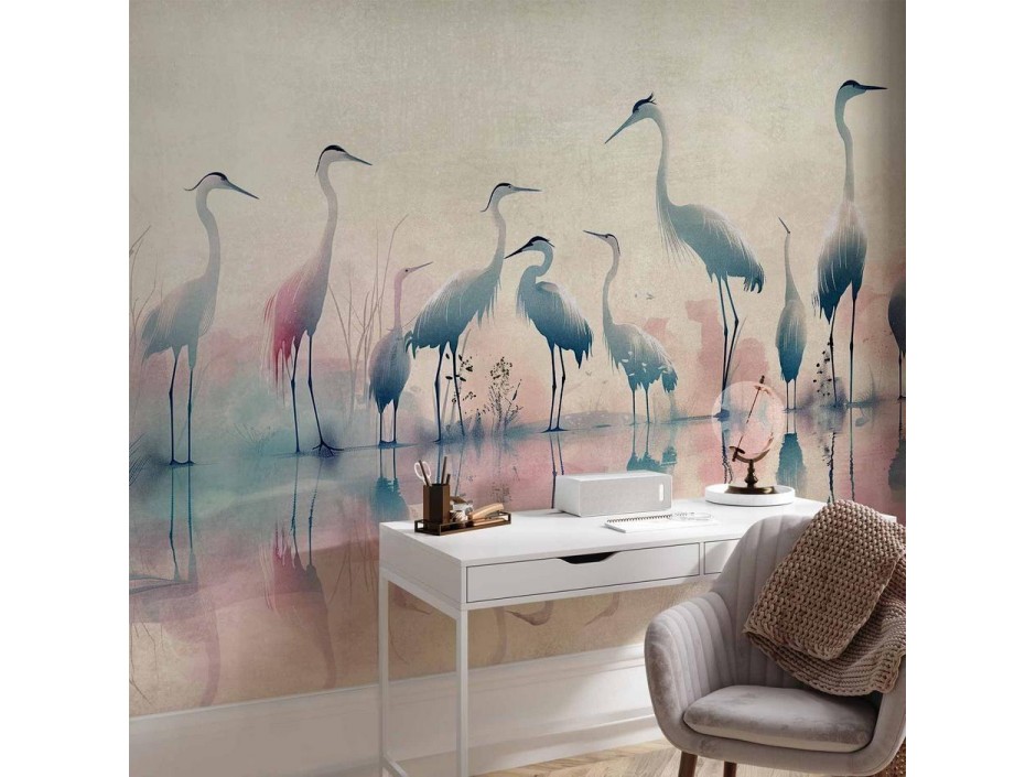 Papier peintUn "Papier peint - Birds by the lake - herons painted in watercolour in delicate grey and pink colours" disponible dans notre offre est une solution simple et rapide pour des personnes qui veulent redonner une nouvelle vie...